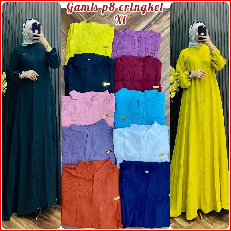 Baju Dress Gamis Seragaman Jumbo Standar Wanita Remaja Dewasa Bahan Cringkel Kringkel List Mix Payet Premium Bestseller