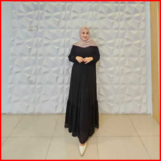 Arzella - Gamis Dress Umroh Kondangan Baju Muslim Wanita Polos Double Layer Aaliya Ceruti Ceruty Babydoll Premium Terlar