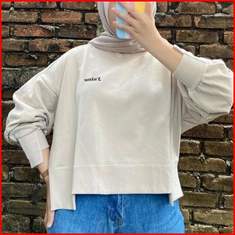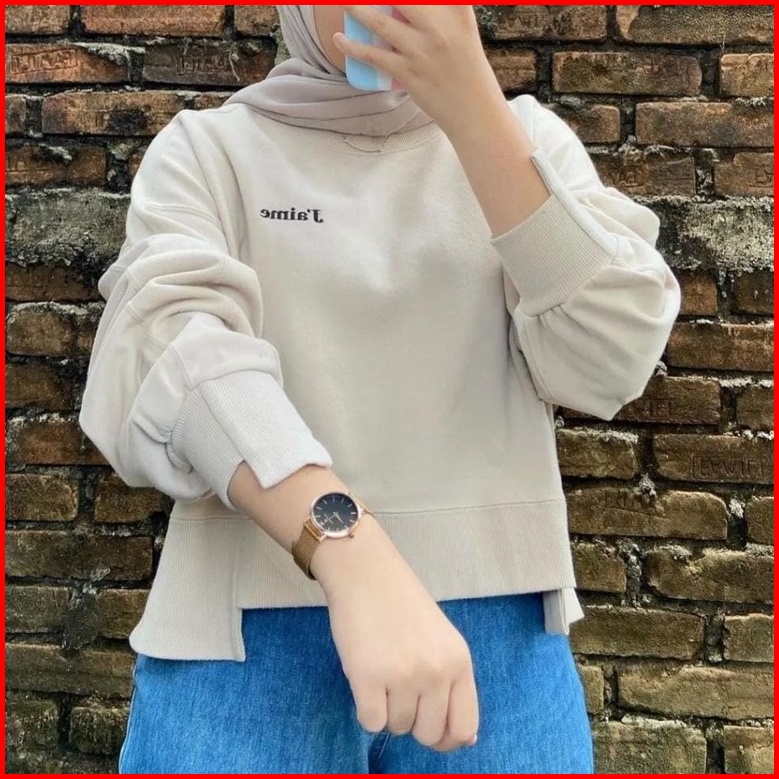 Aime Bordir Sweater Kekinian Ala Korea Crewneck Sweatshirt Kpop Wanita Oversize Fashion Outfit Ootd Korean Style Sweter