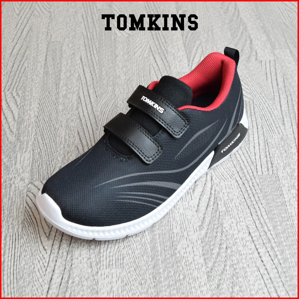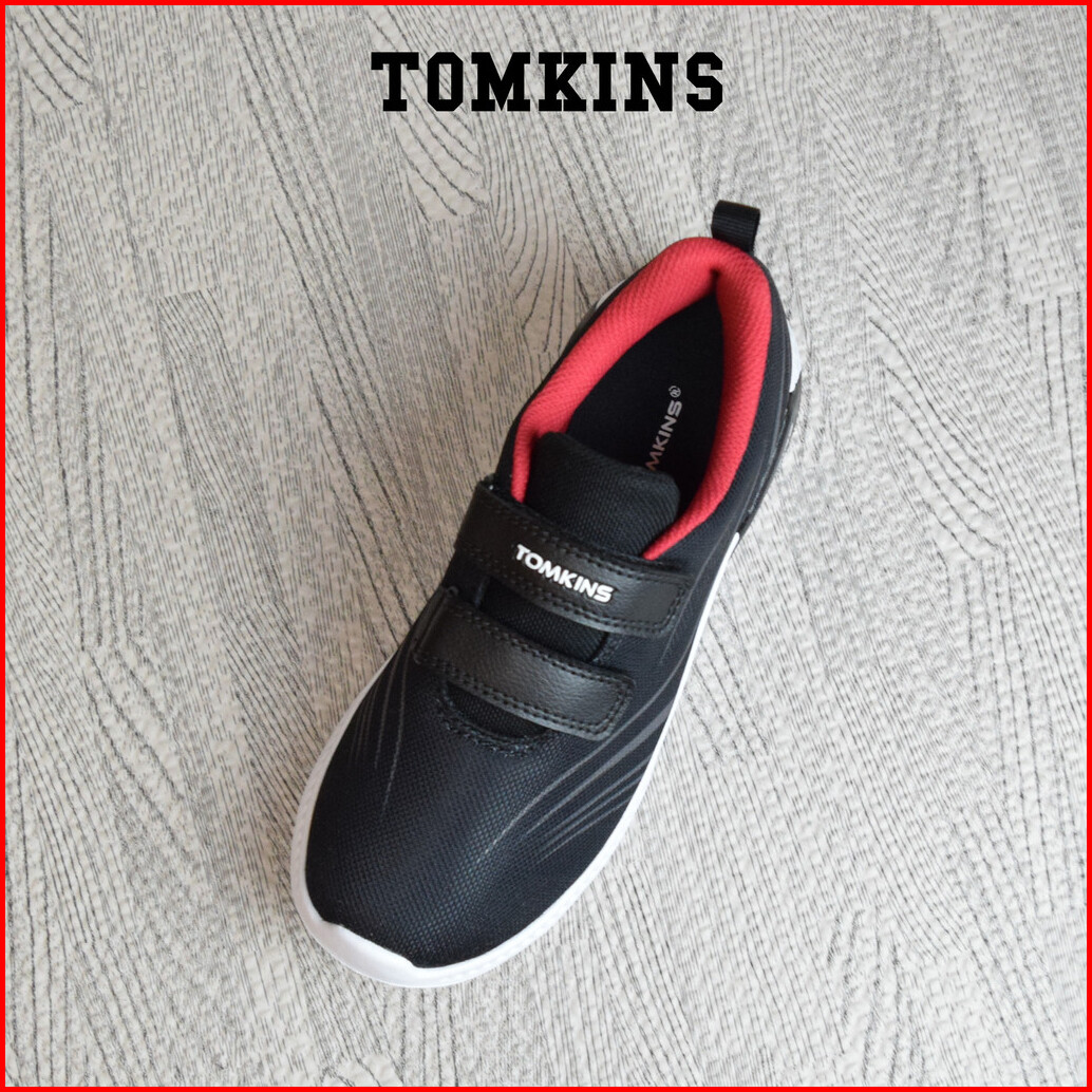 Tomkins Scamanda - Hitam Merah Sepatu Sekolah Perekat Anak Remaja