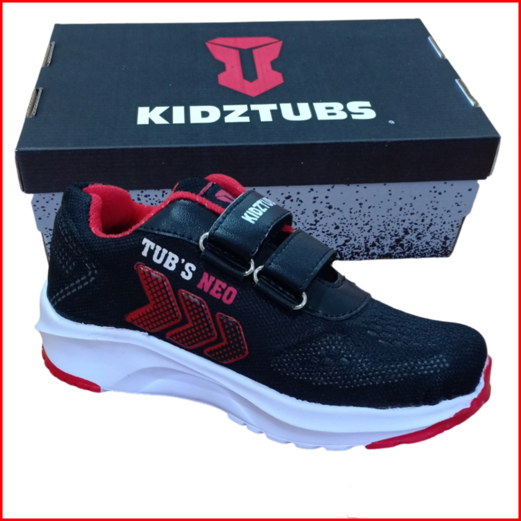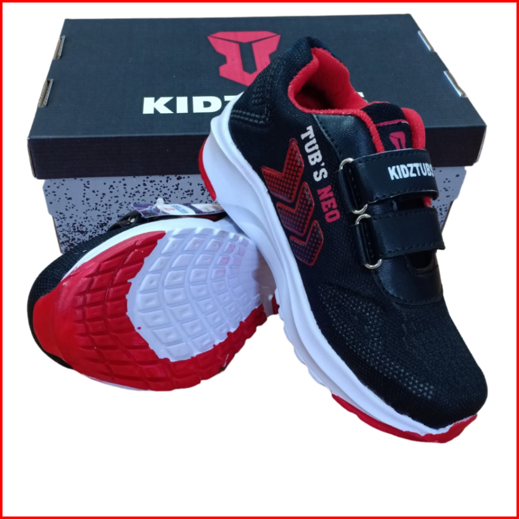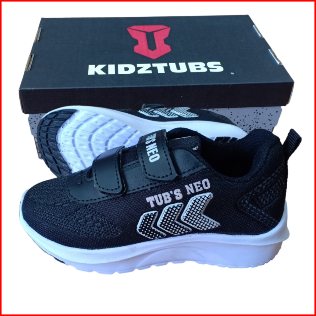 Kidztubs Sepatu Sekolah Anak Laki Laki Perempuan Warna Hitam Perekat Rekat Usia 6 -10 Tahun-kdz2047