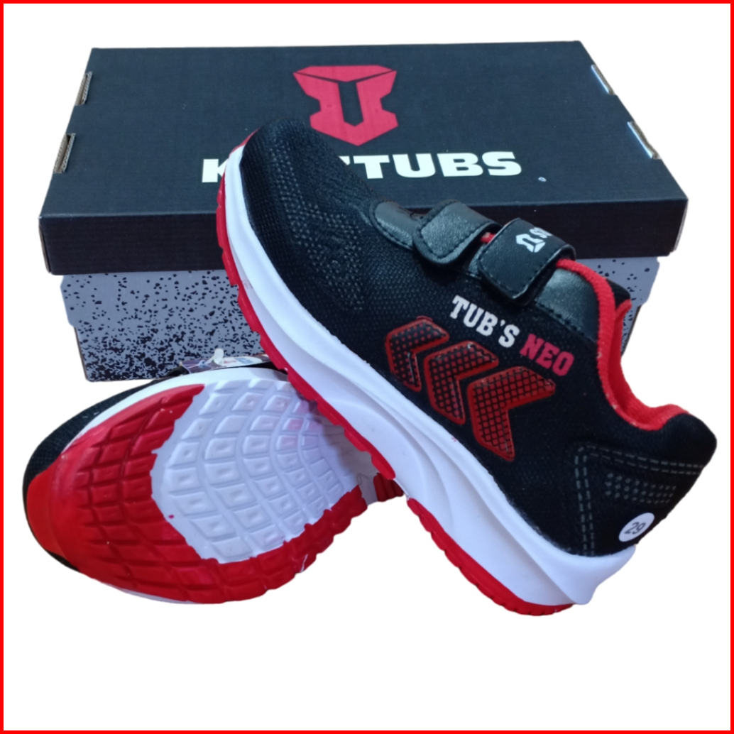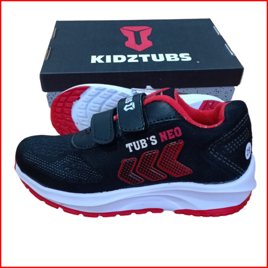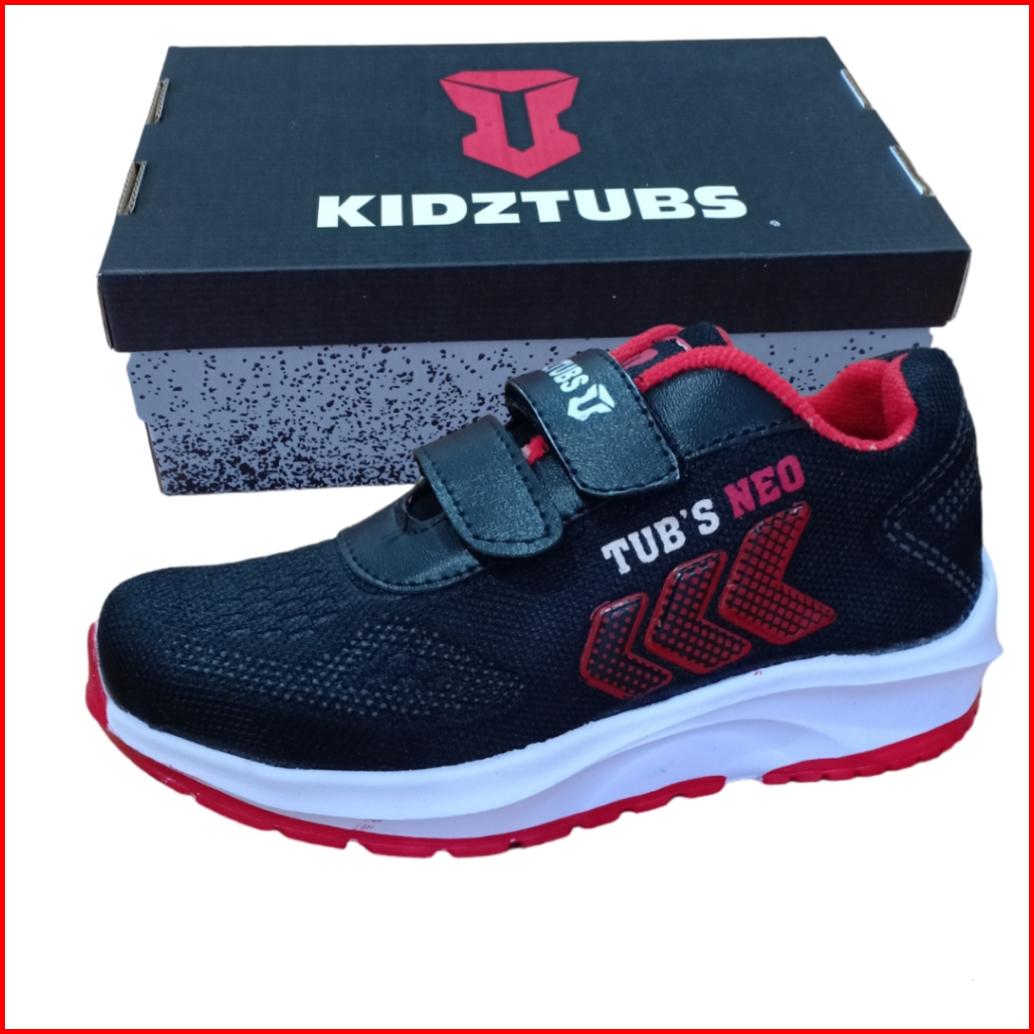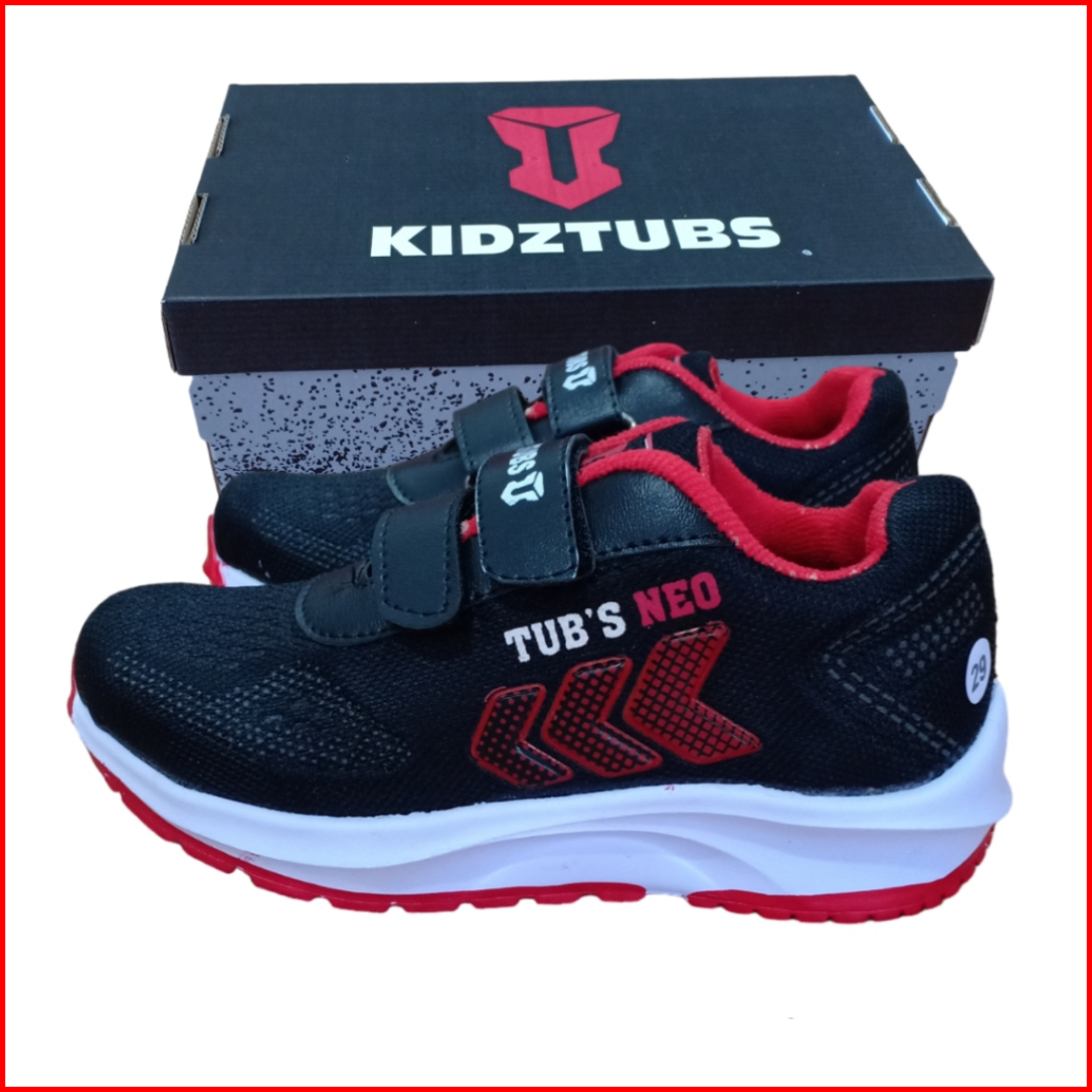 Kidztubs Sepatu Sekolah Anak Laki Laki Perempuan Warna Hitam Perekat Rekat Usia 6 -10 Tahun-kdz2047