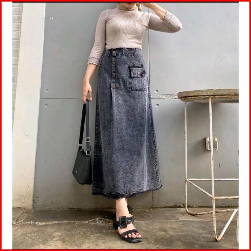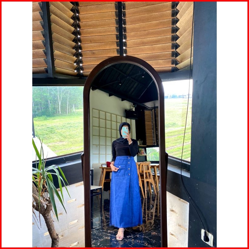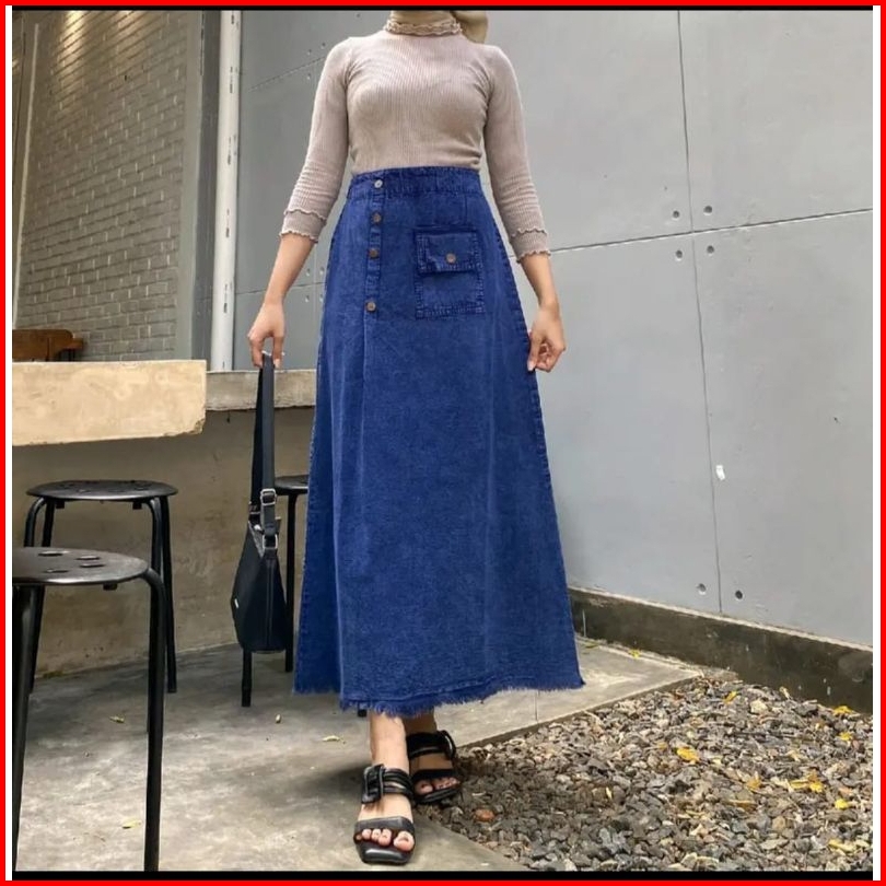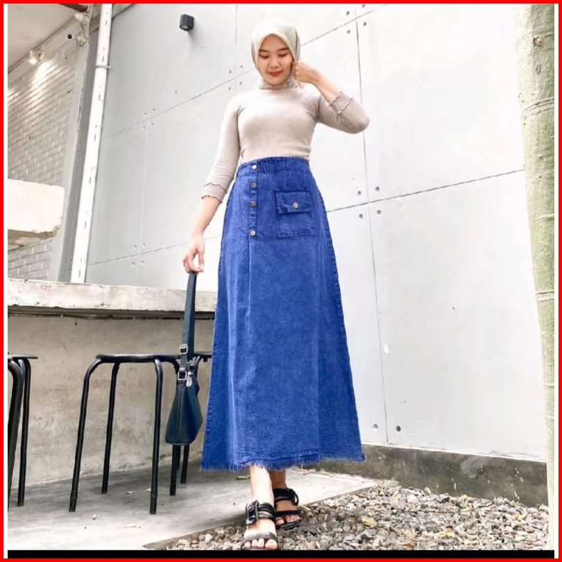 Rok Luna Skirt Jeans Rawis Wanita Luna Skirt Premium Denim Strech Semi A-line