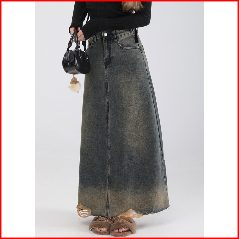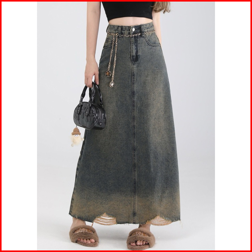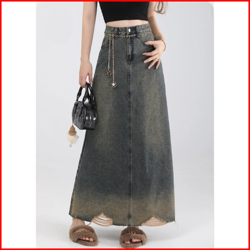 Thegirlhouse - Highwaist Rok Jeans Panjang Retro Valen