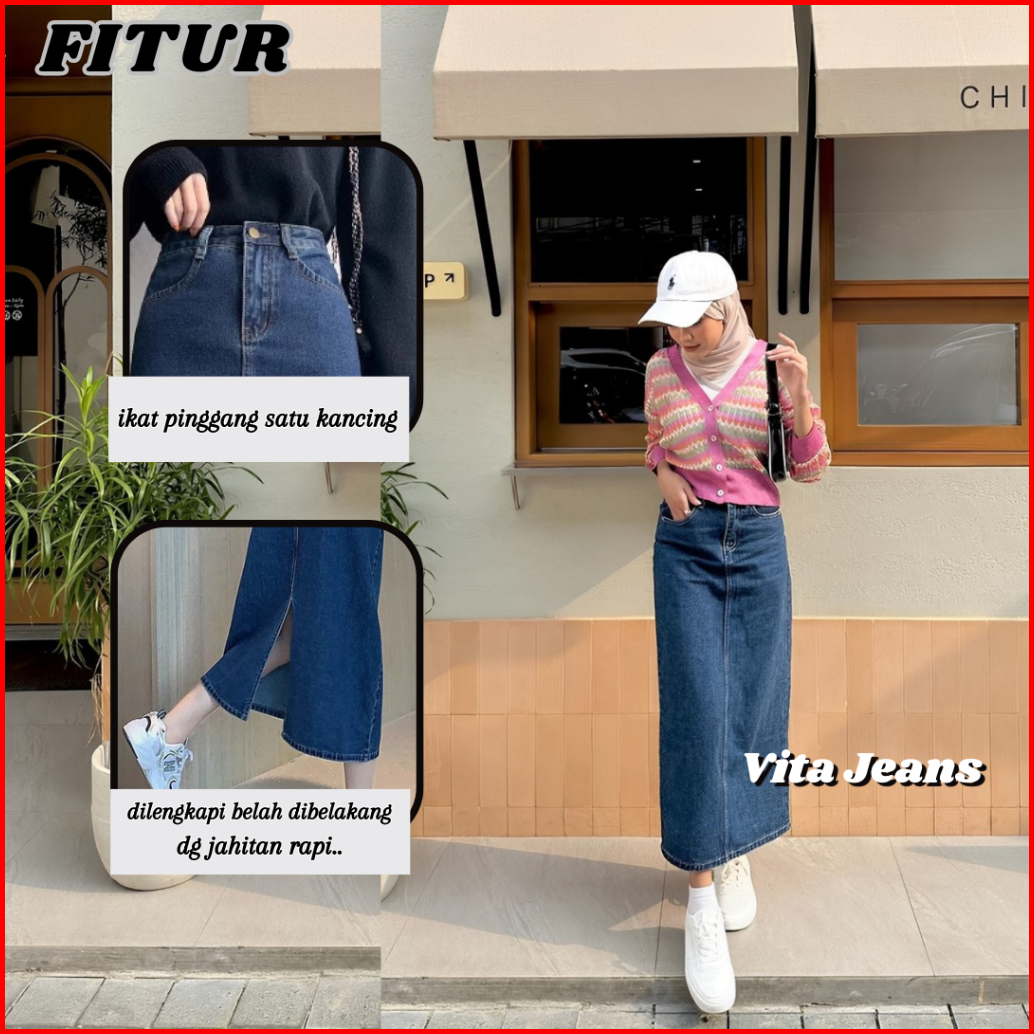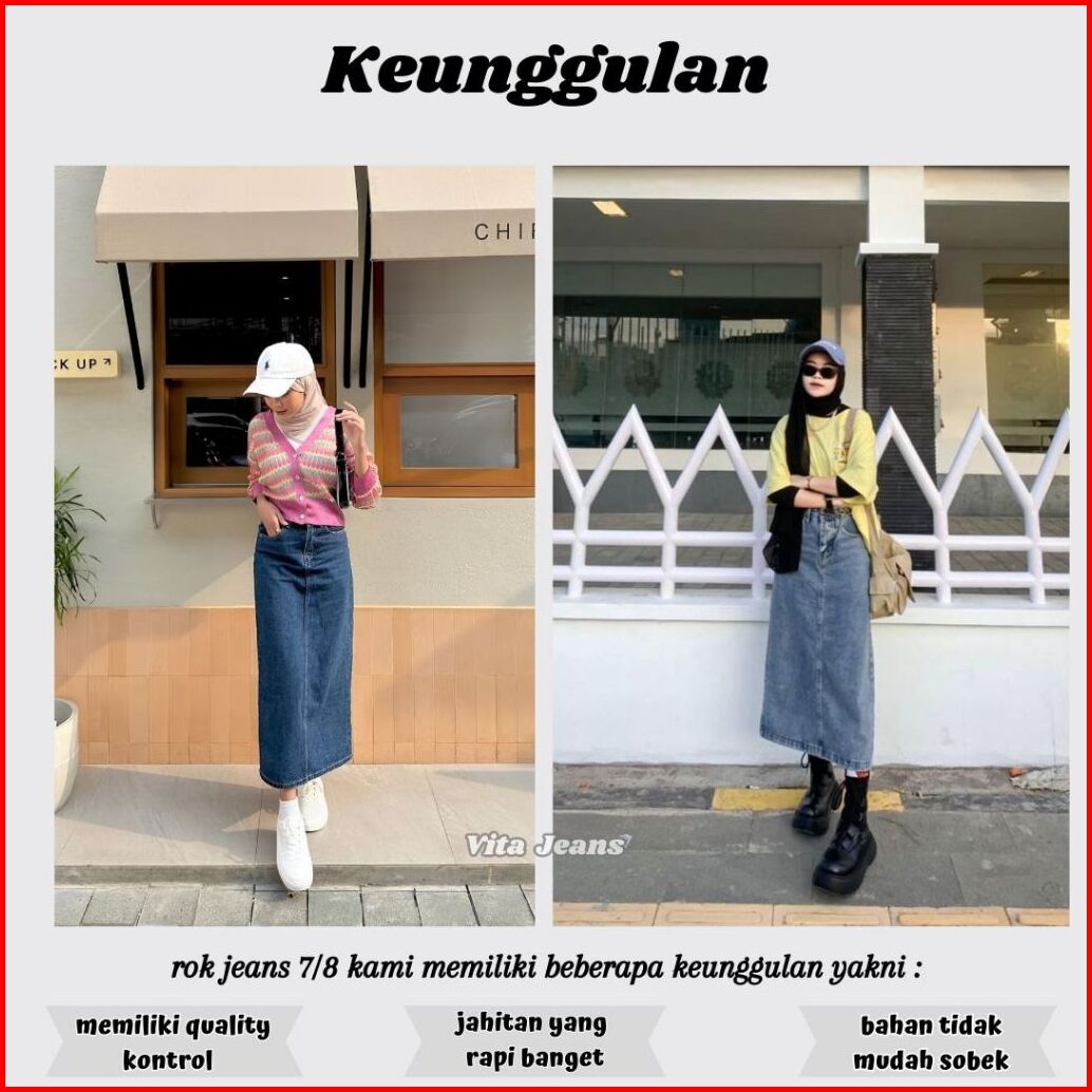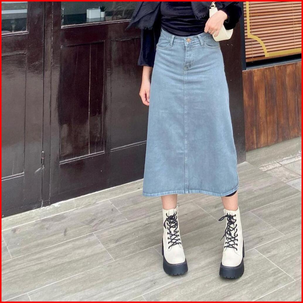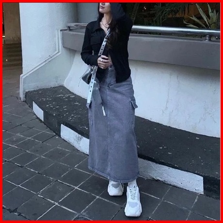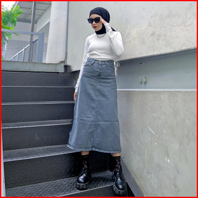 Jeans Rok Wanita Kekinian Jeans Wanita Panjang Korean Style Jeans Span Skirt-rok Span Style Rok Jeans Terbaru Keren