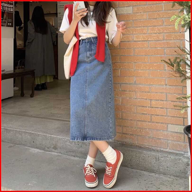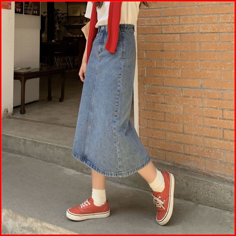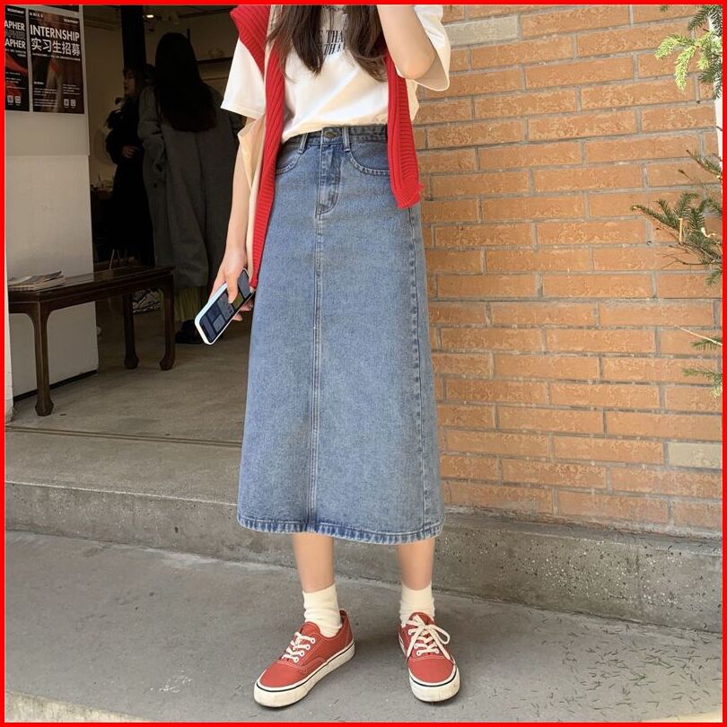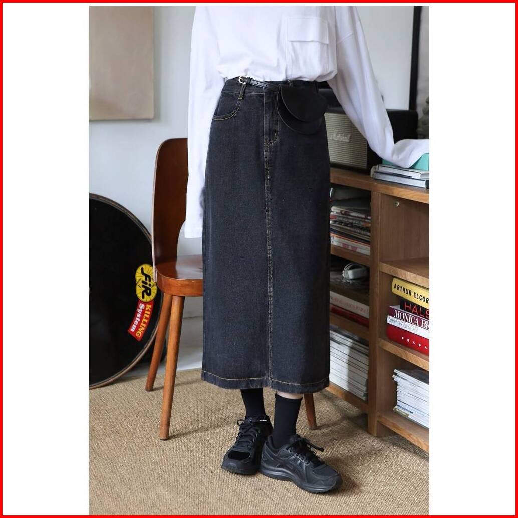 Rok Jeans Stretch Span Panjang Gisca Kancing Depan Tebal Dan Melar