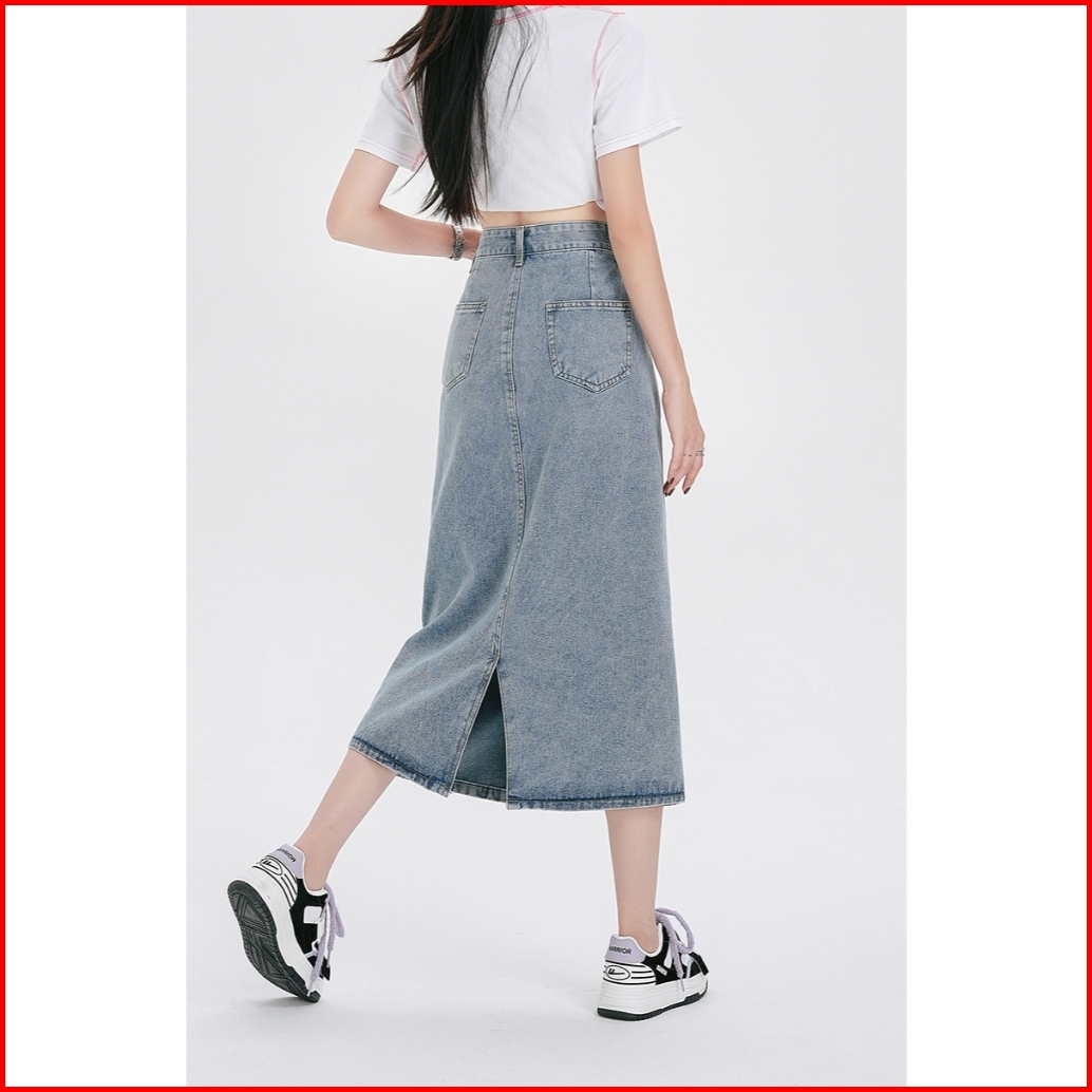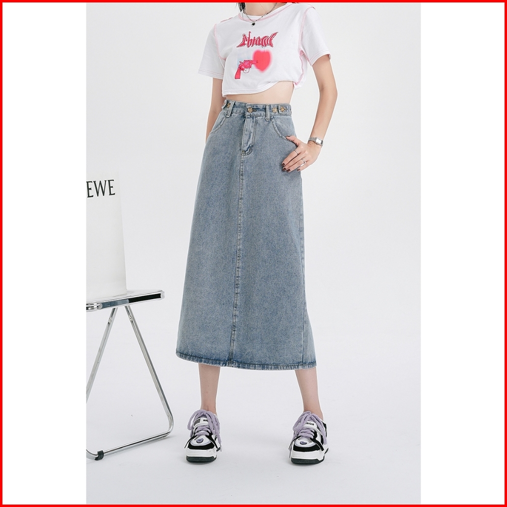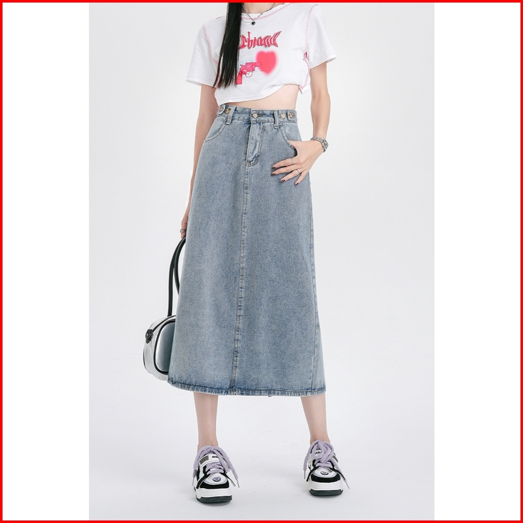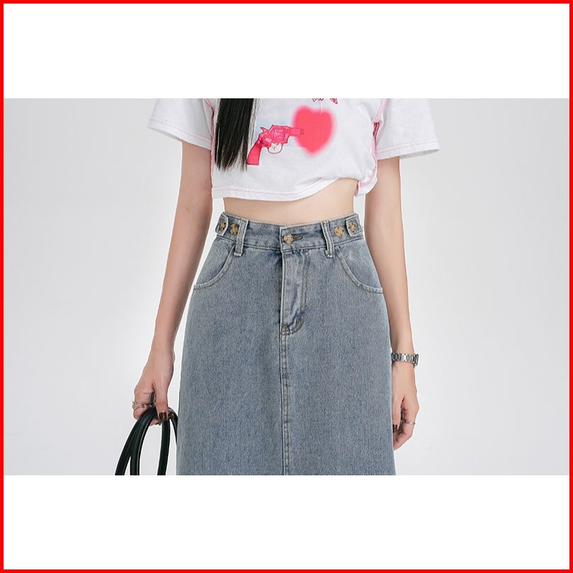 Alice Rok-rok Jeans Wanita Import Rok A-line Denim Premium Rok Jeans Highwaist Biru