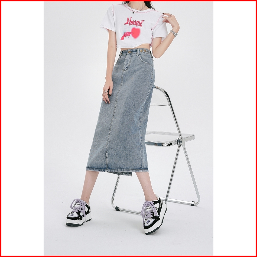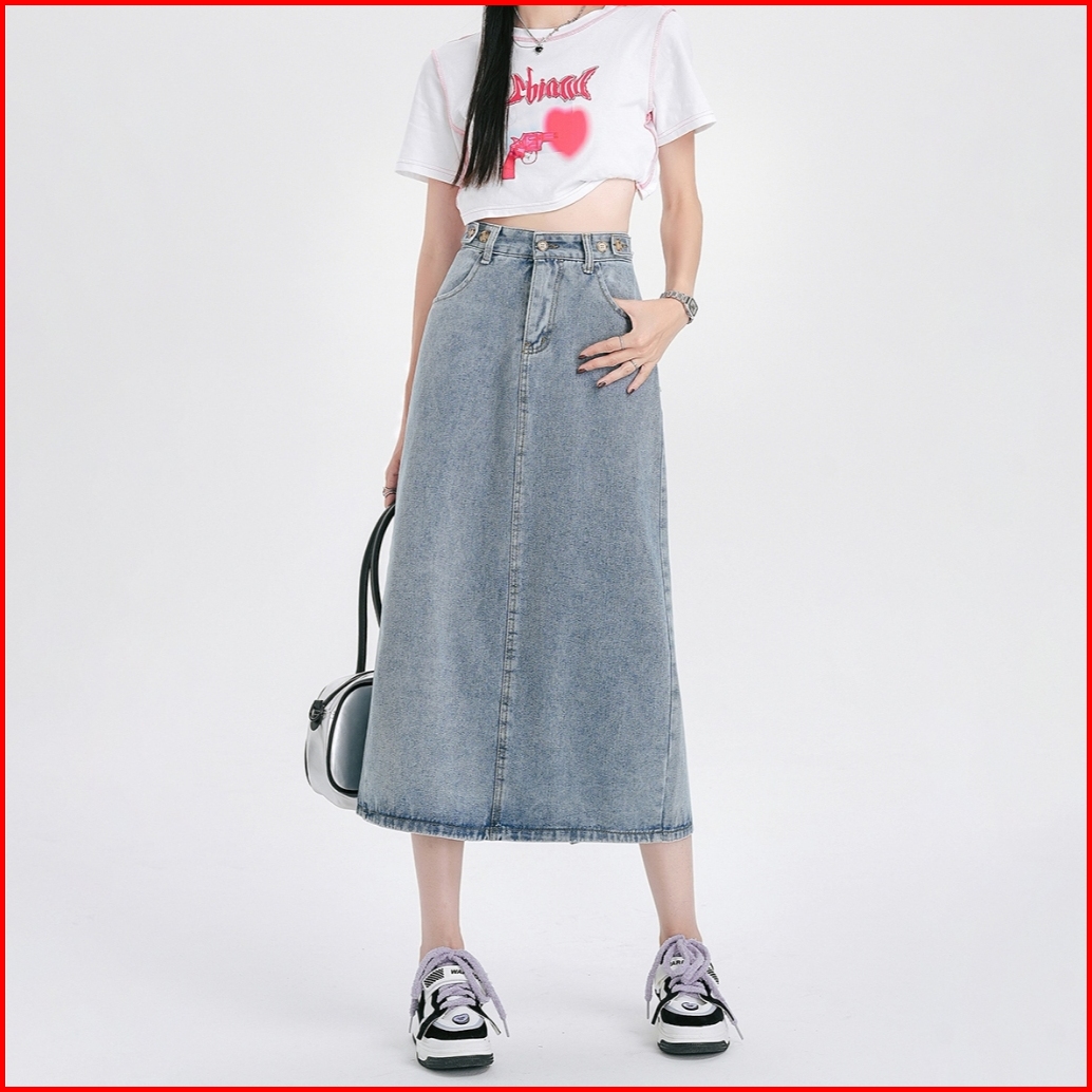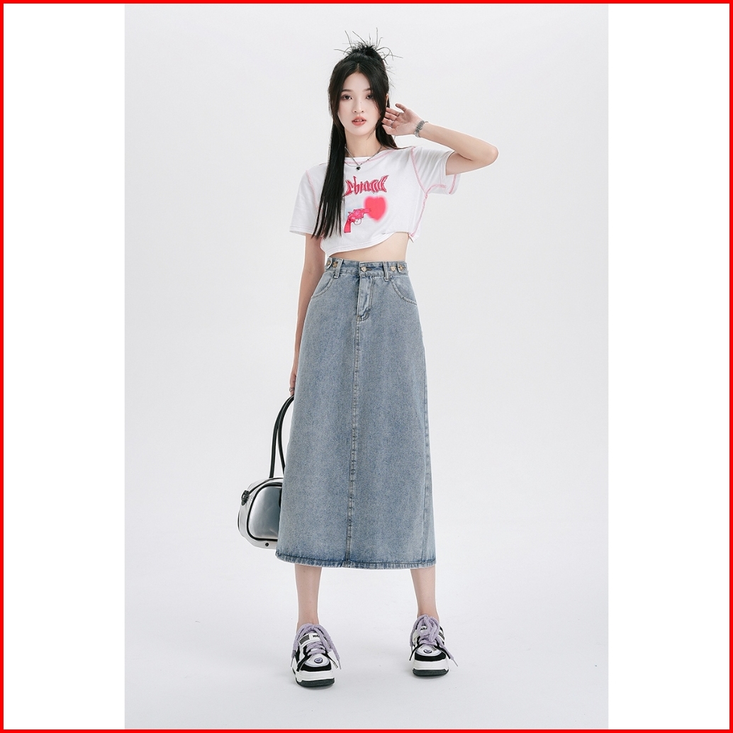 Alice Rok-rok Jeans Wanita Import Rok A-line Denim Premium Rok Jeans Highwaist Biru