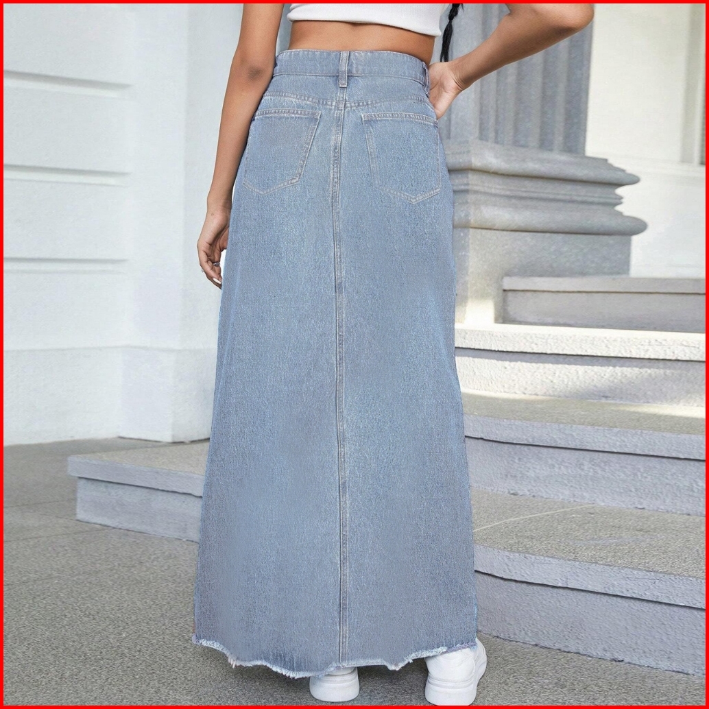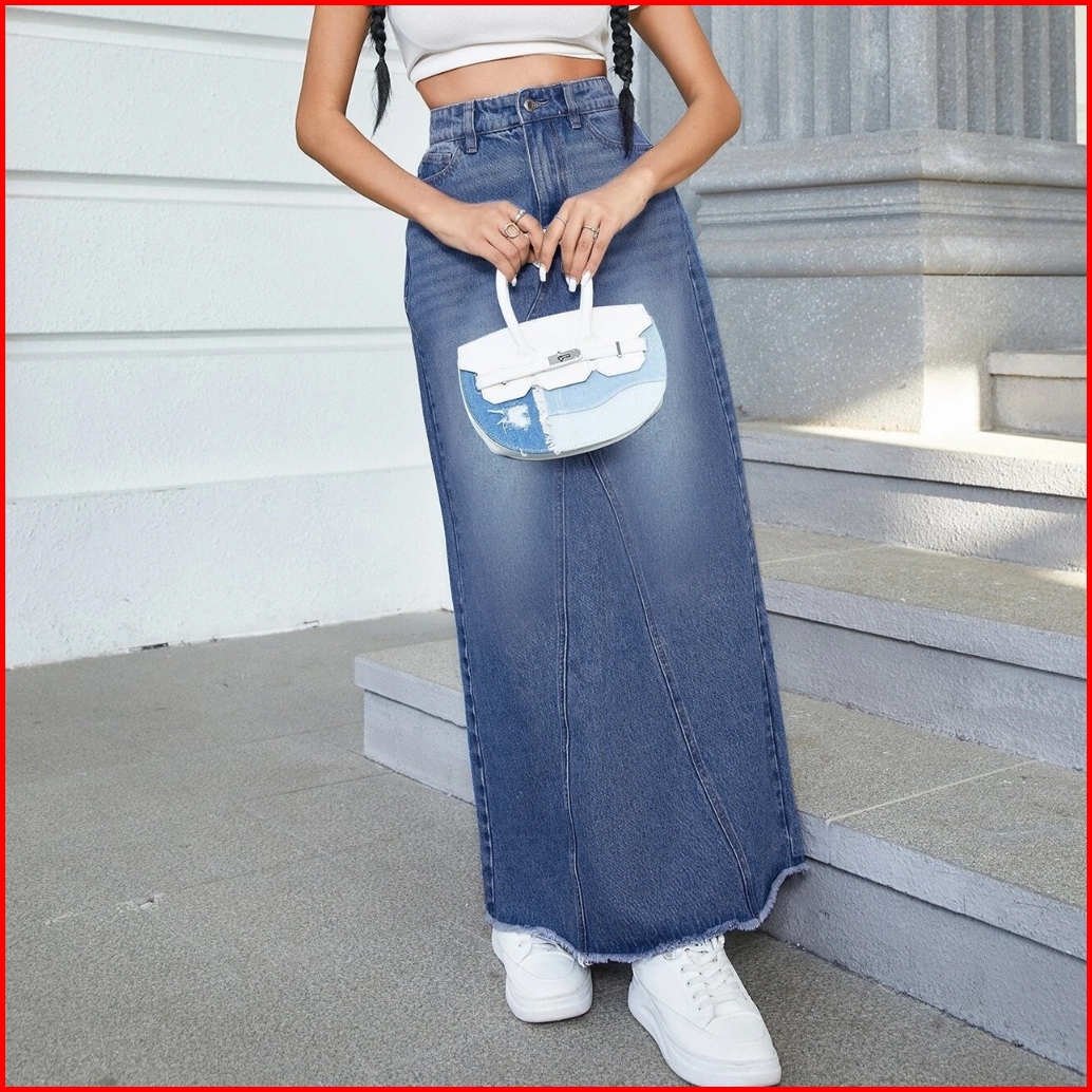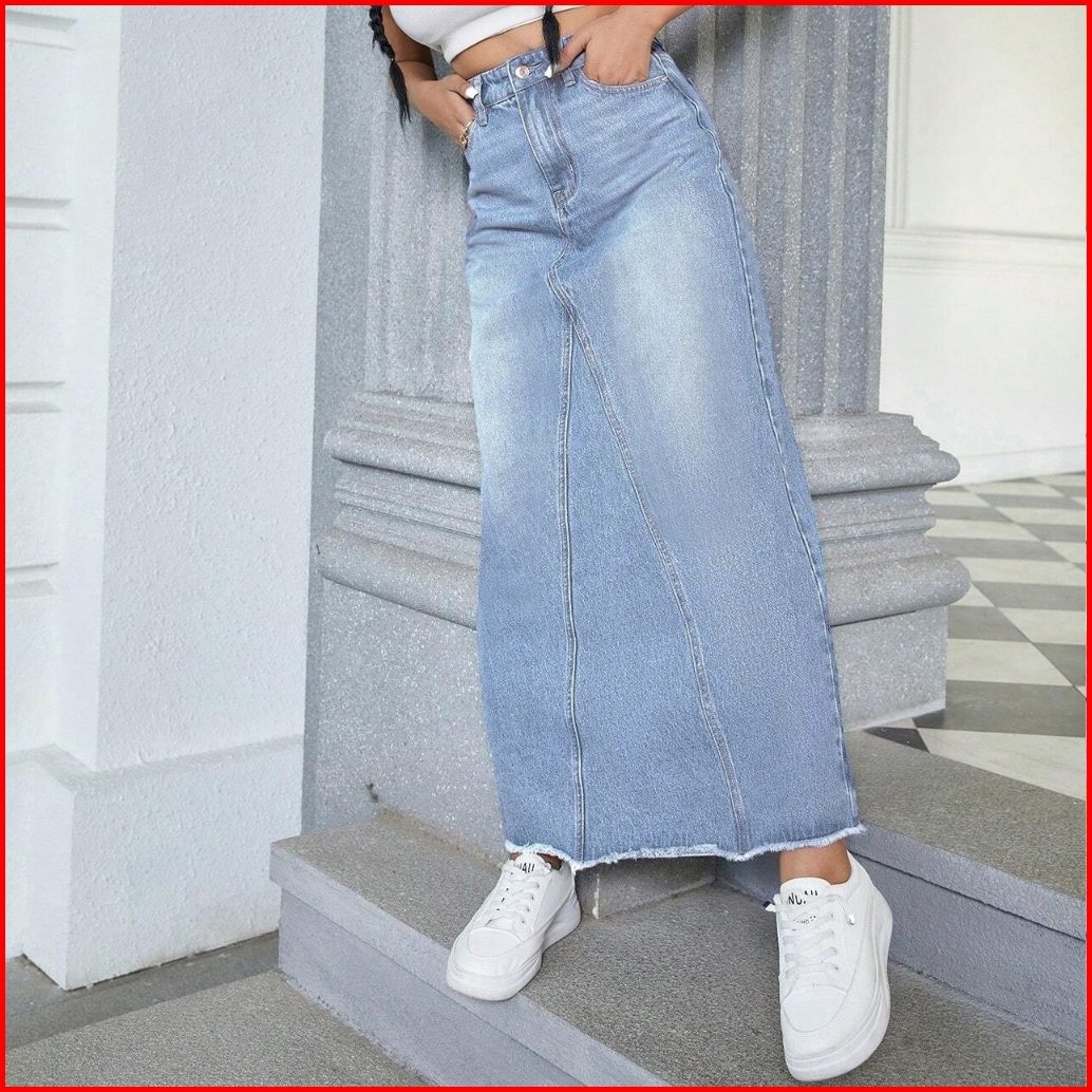 Long Denim Skirts For Women Korean Style Stylish Pockets Trend Rok Skirt