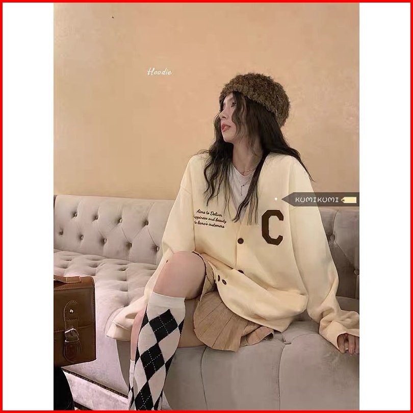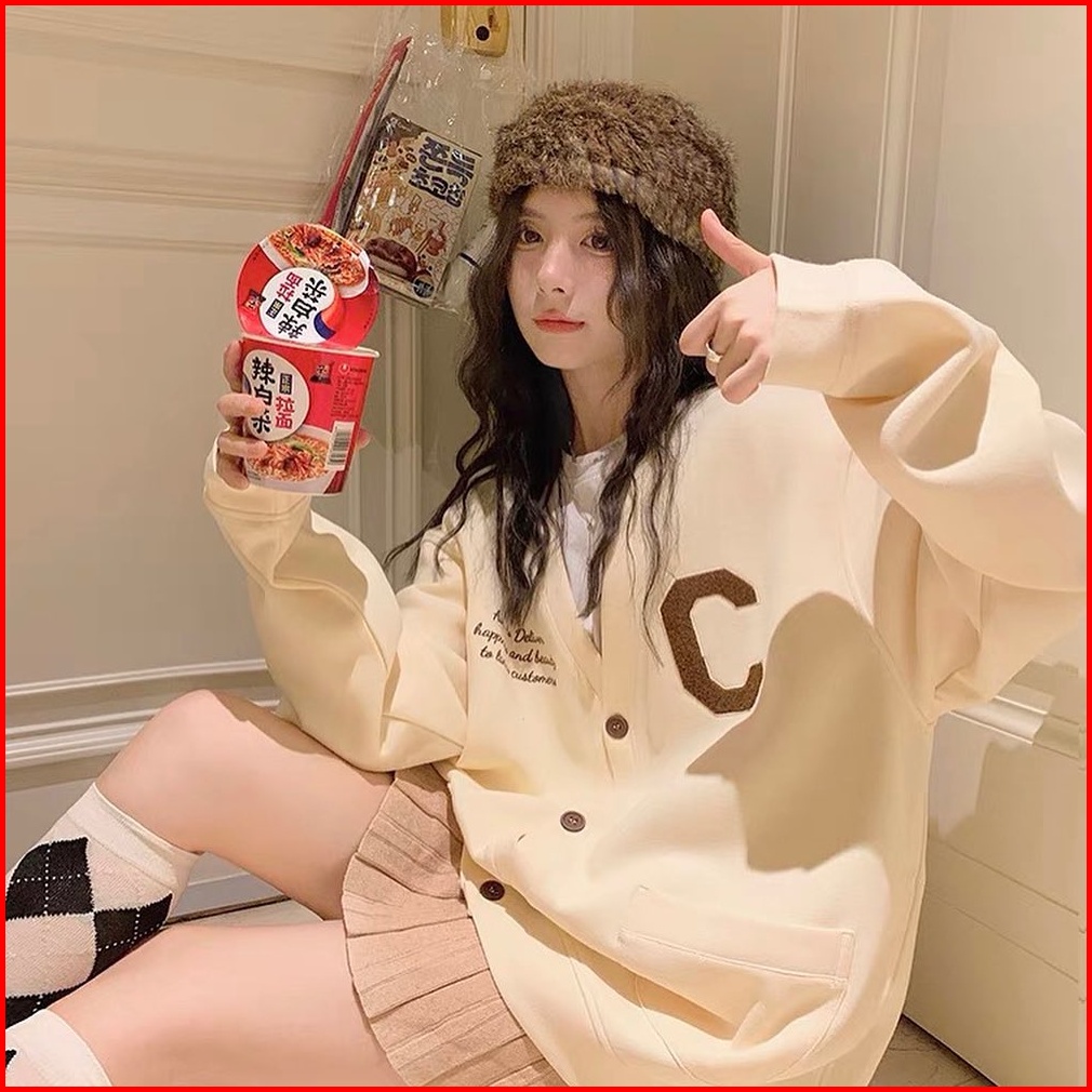 C Cardigan Wanita Oversize Sweater Kardigan Bordir Oversize Cardie Outer Korean Style