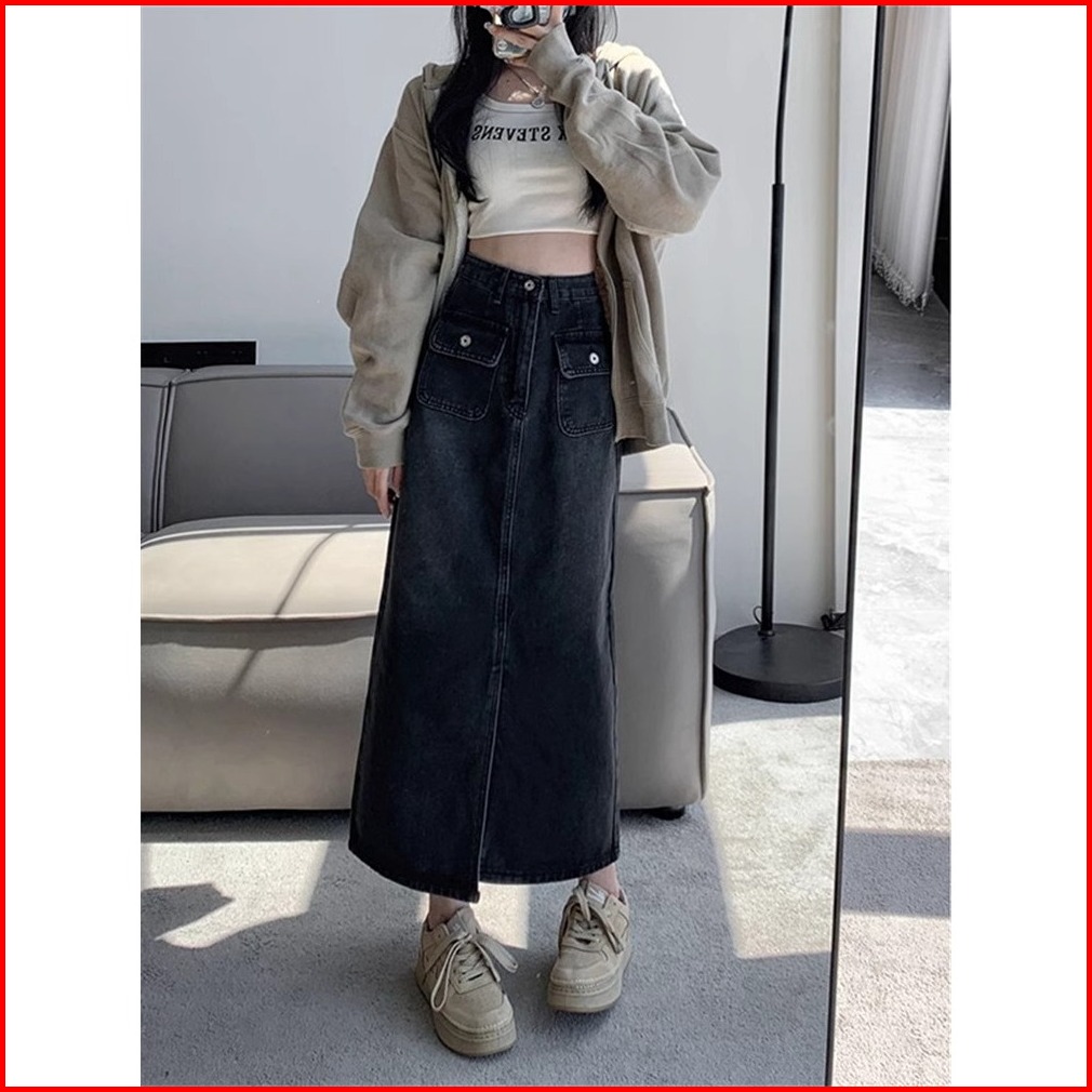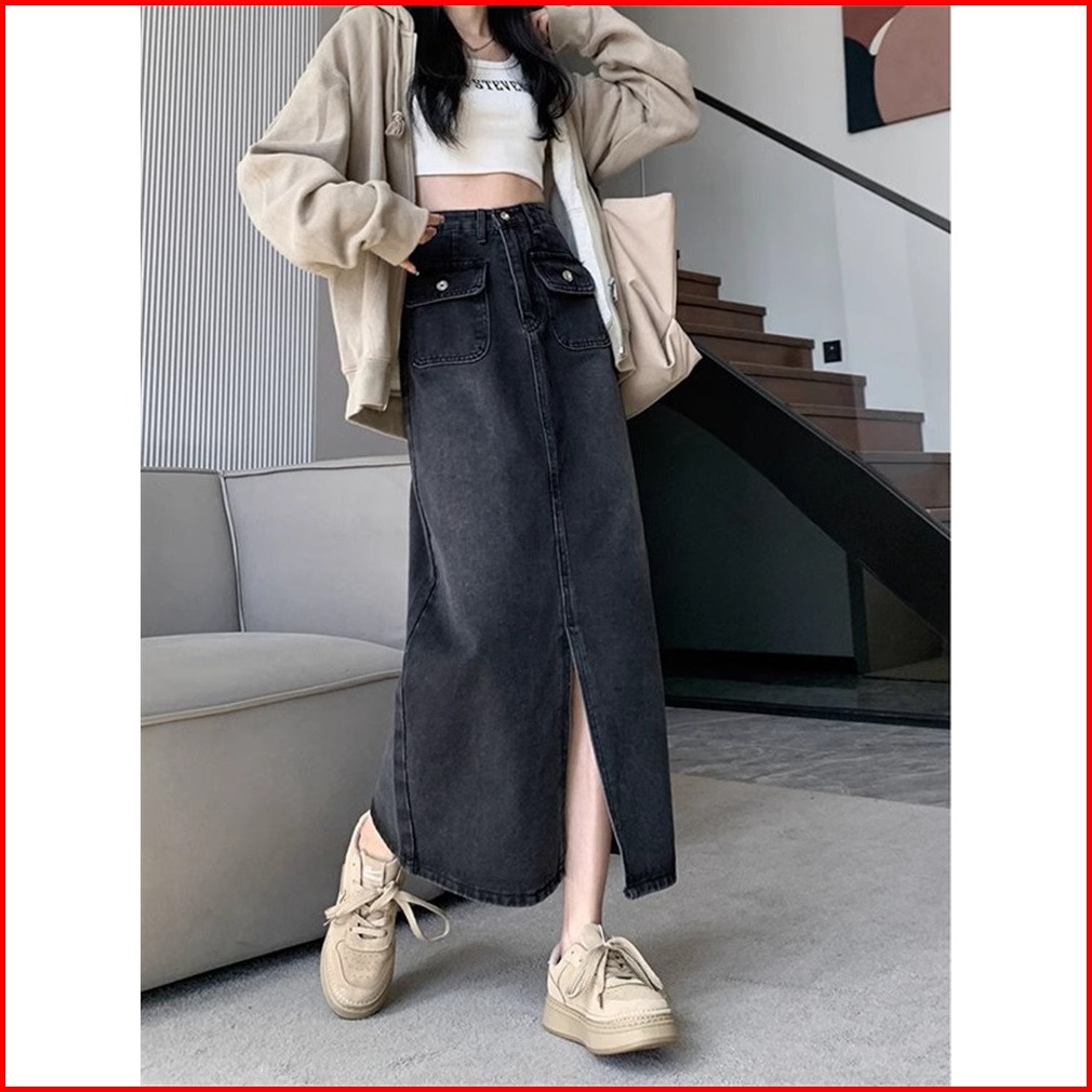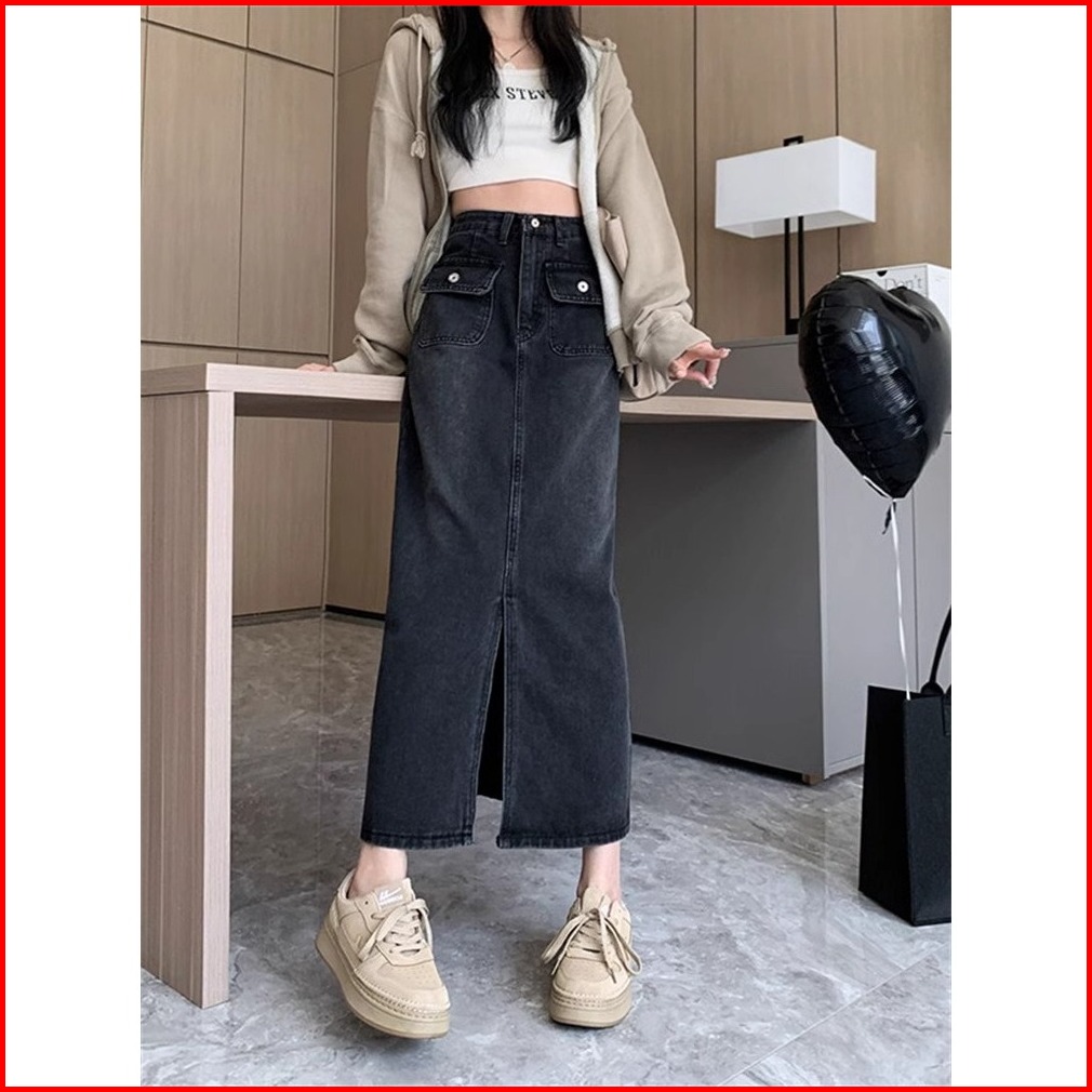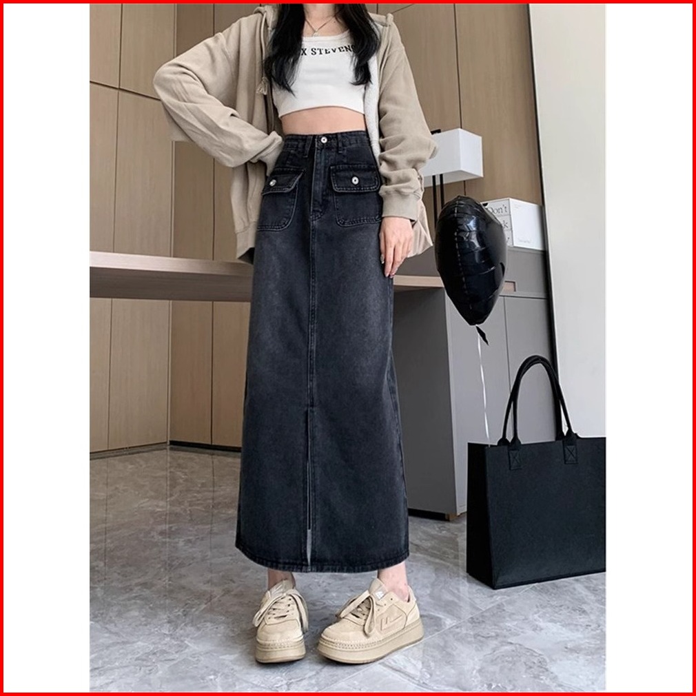 Rok A-line Denim Kasual Fashion Rok Midi Highwaist Premium Korea Style