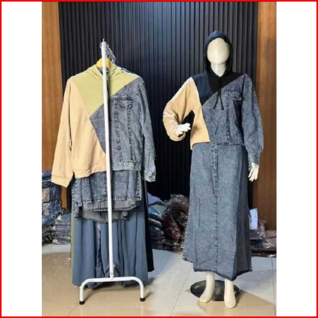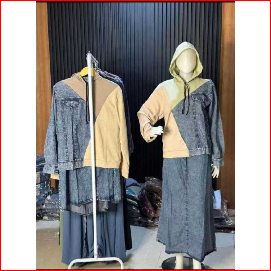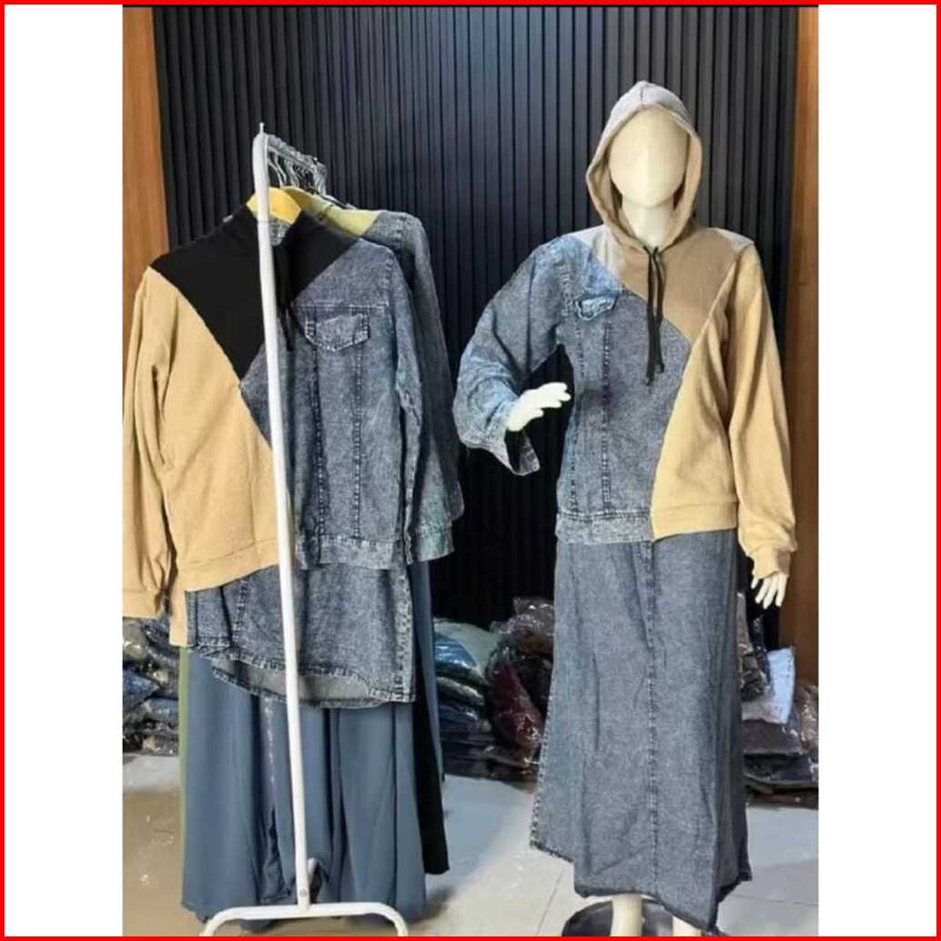 Promo Stelan One Set Mewah Alnami Set Rok Mat Knith Mix Jeans Stelan Atasan Rok Viral Jumbo L -xxl