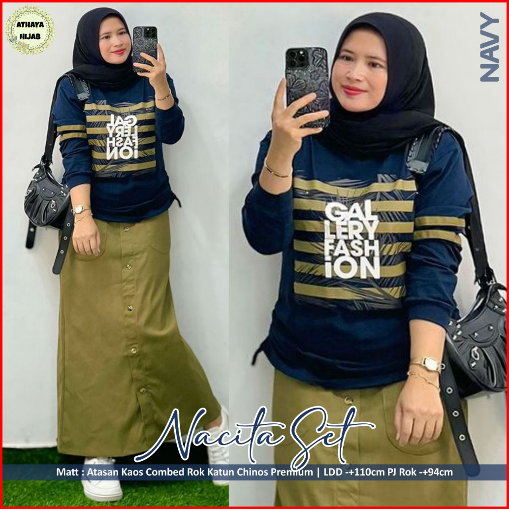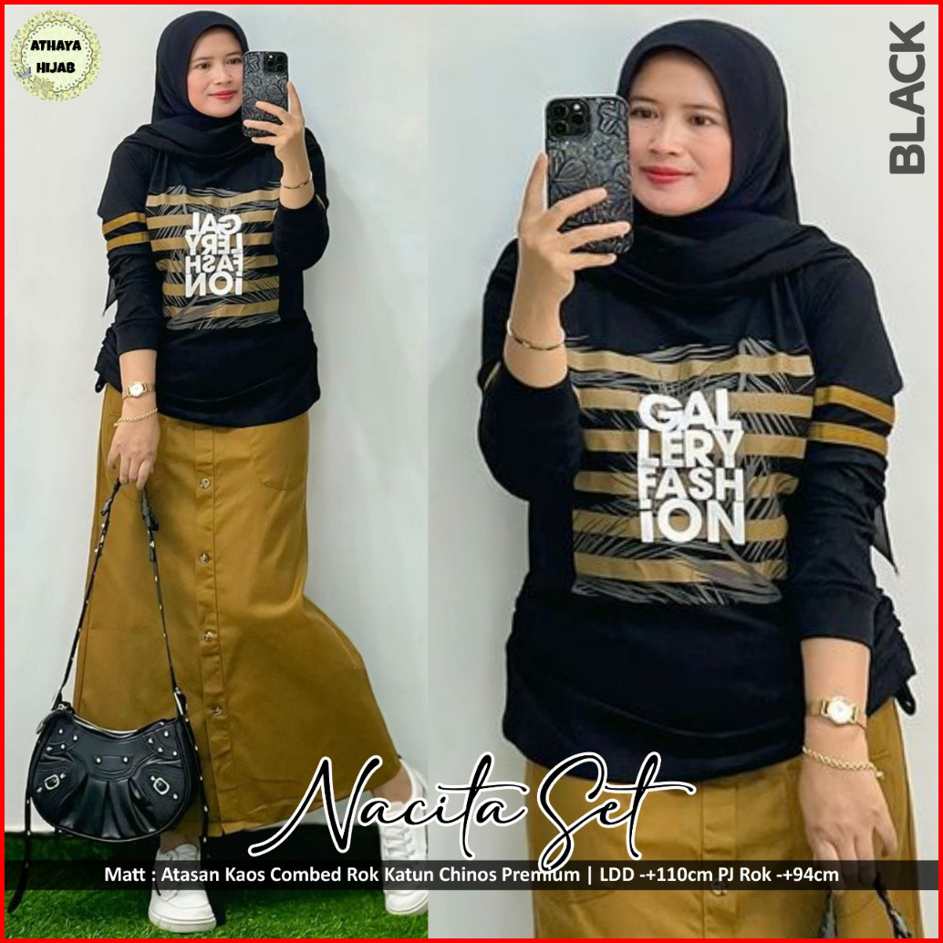 Nacita Set By Athaya Setelan Wanita Atasan Mix Rok Bahan Combed Mix Chinos Best Seller