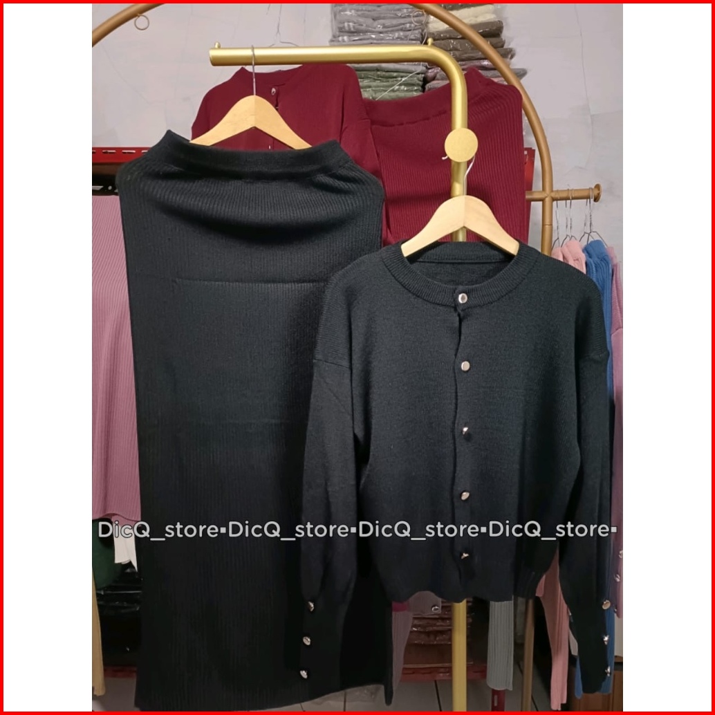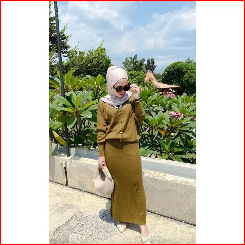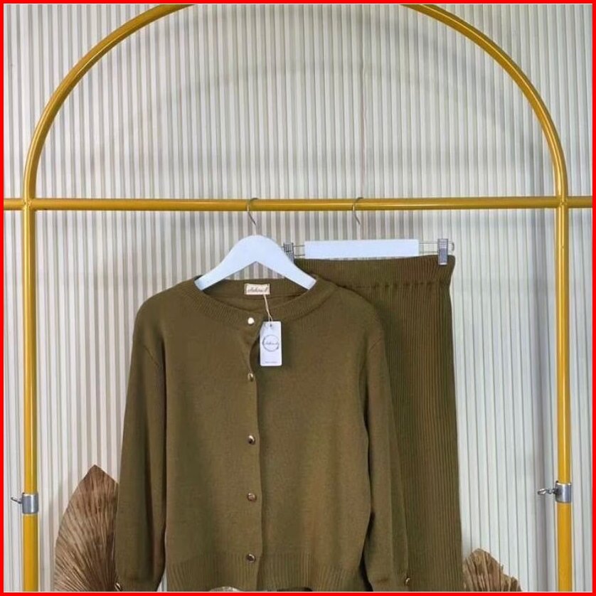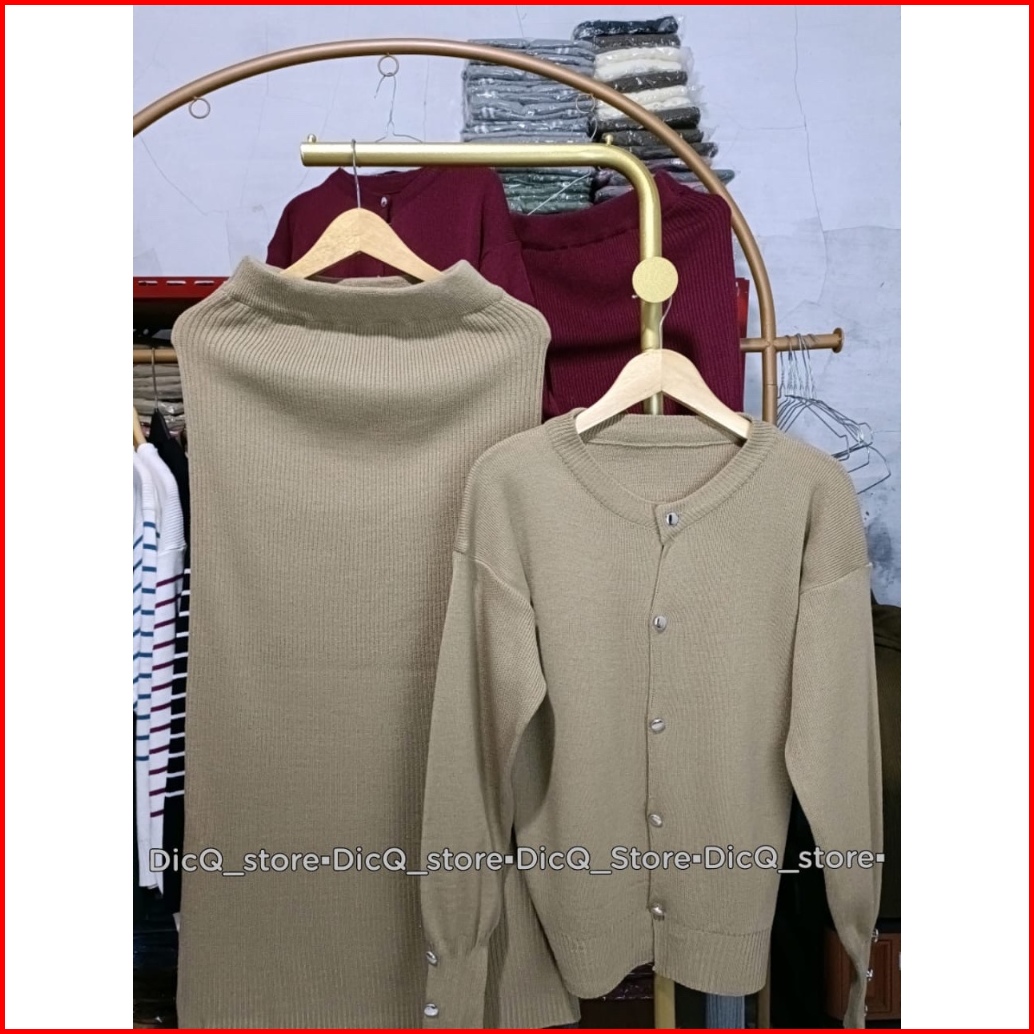 One Set Aira Cardigan Rok Rajut Wanita Premium-stelan Wanita Terbaru