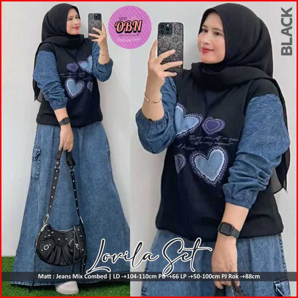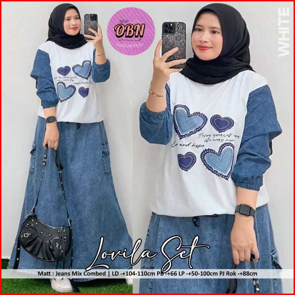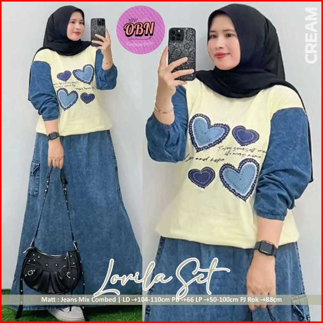 Lovila Set By Obn Setelan Wanita Atasan Mix Rok Bahan Jeans Mix Combad Best Seller
