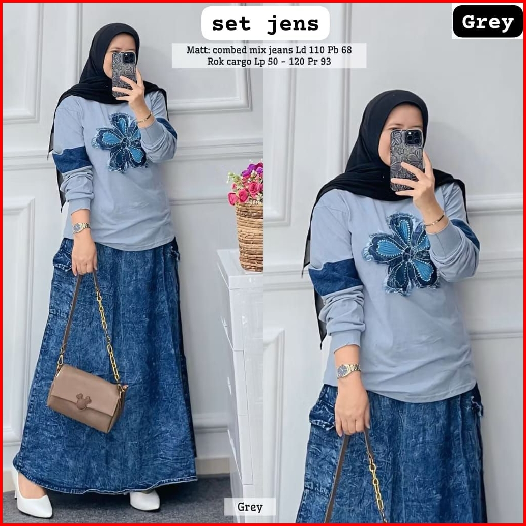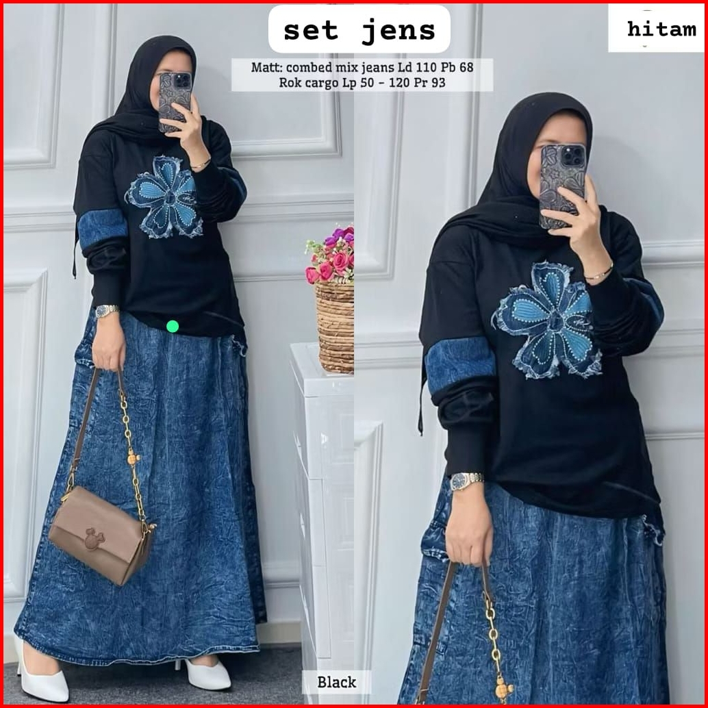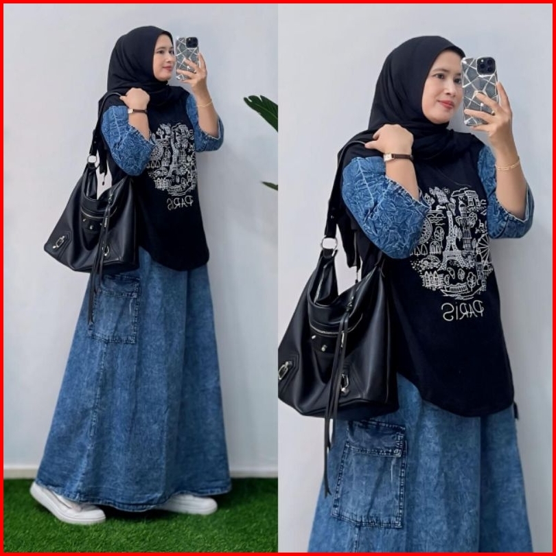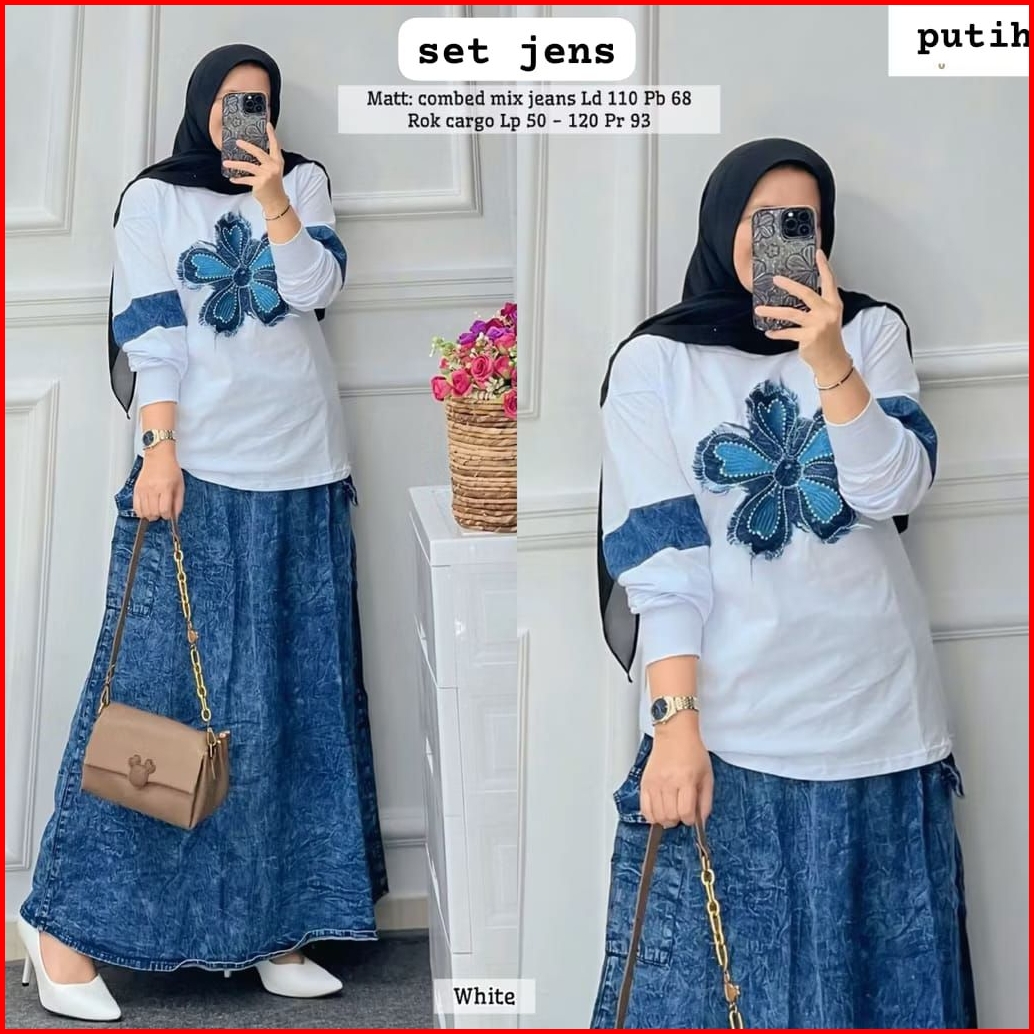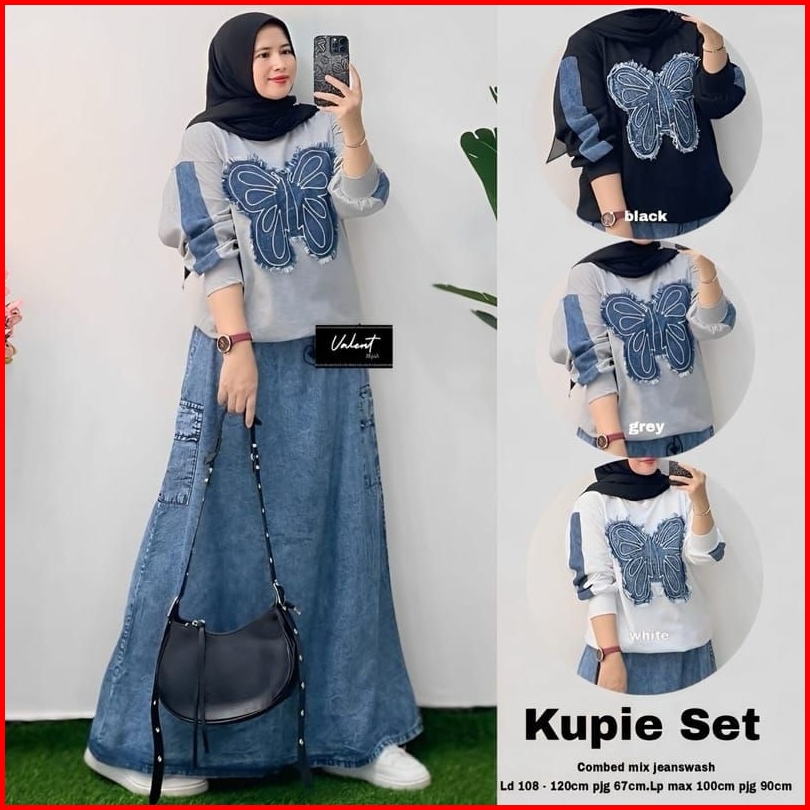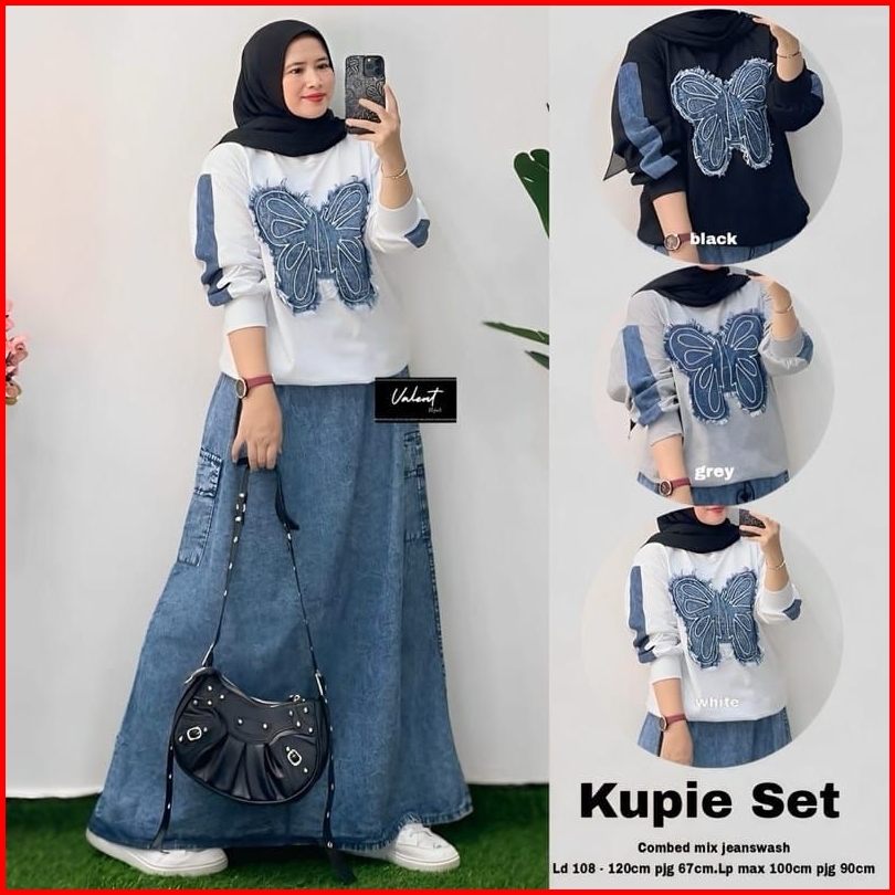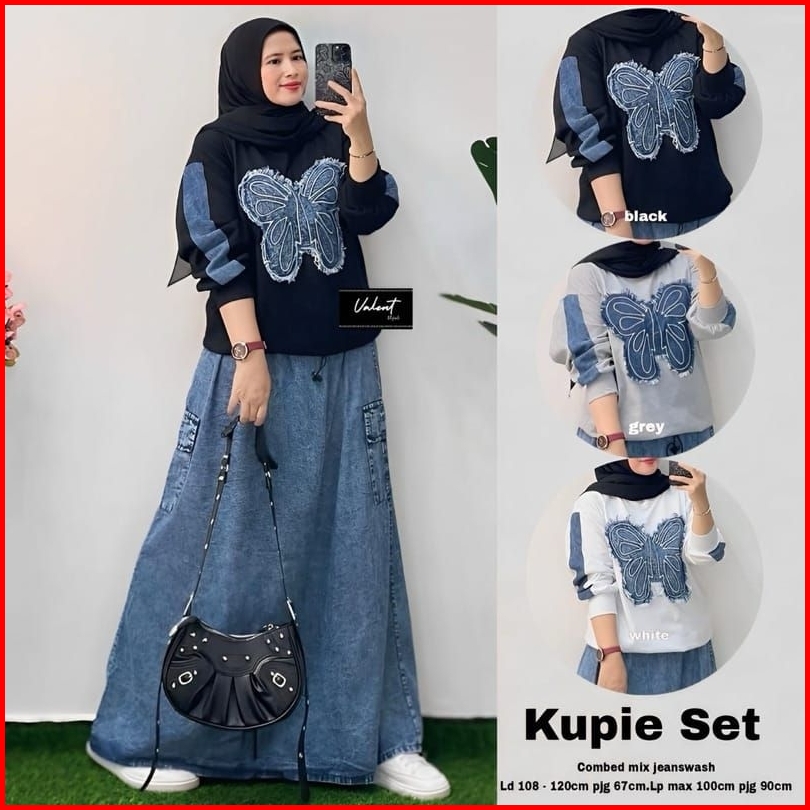 Kamafa Setelan Rok Jeans Sablon Motif Kupu Paris