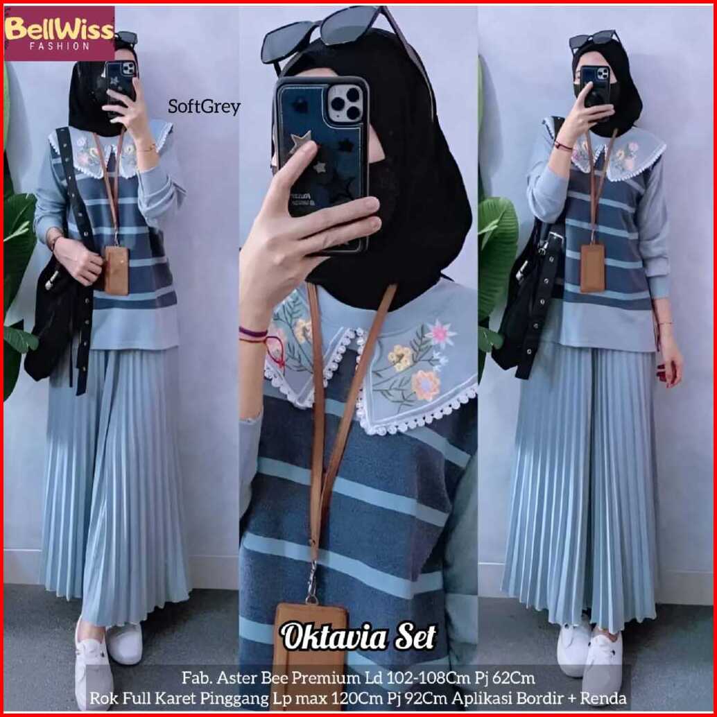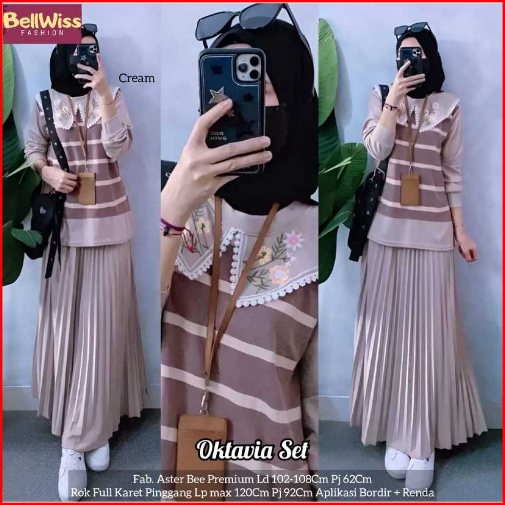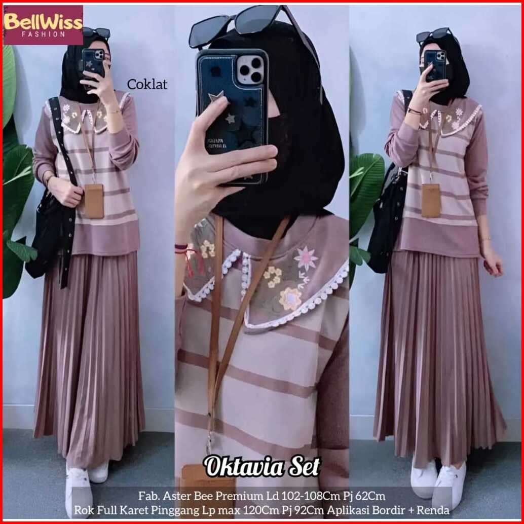 Oktavia Set By Bellwiss Setelan Wanita Atasan Mix Rok Bahan Aster Bee Best Seller
