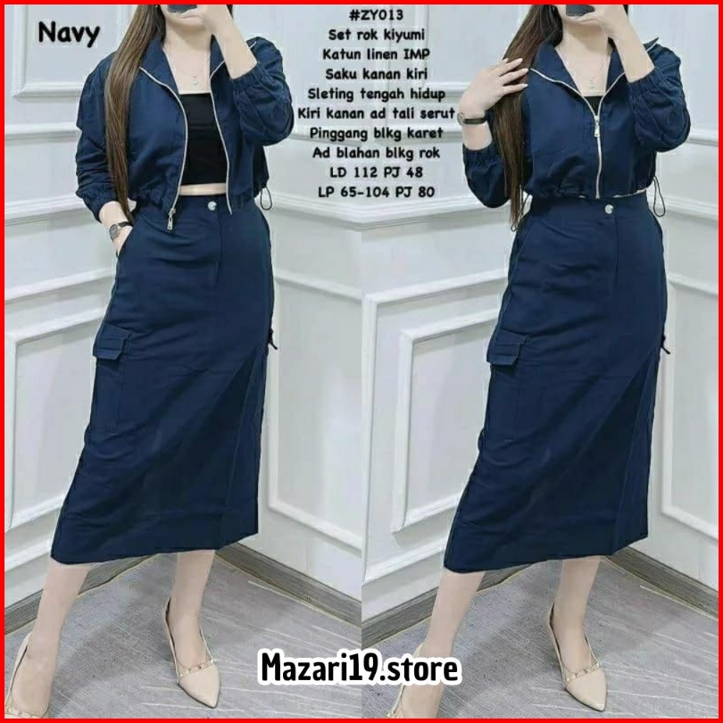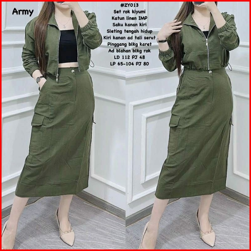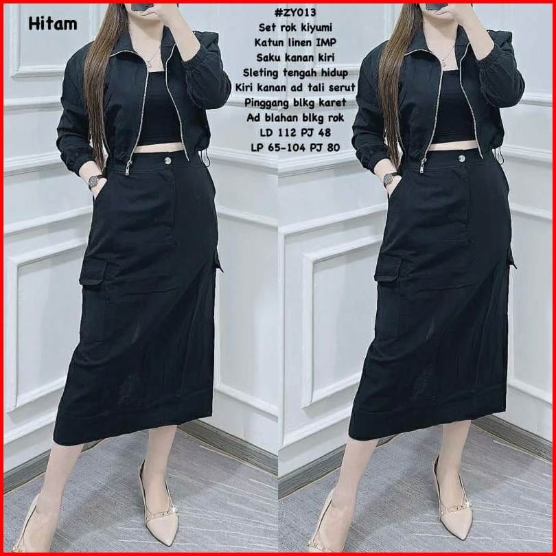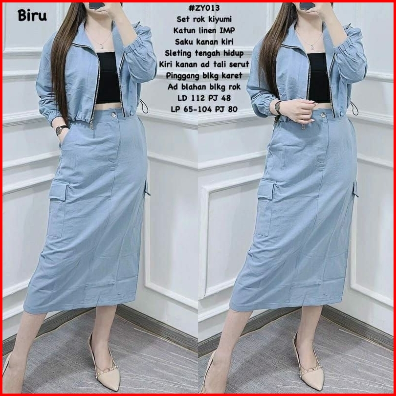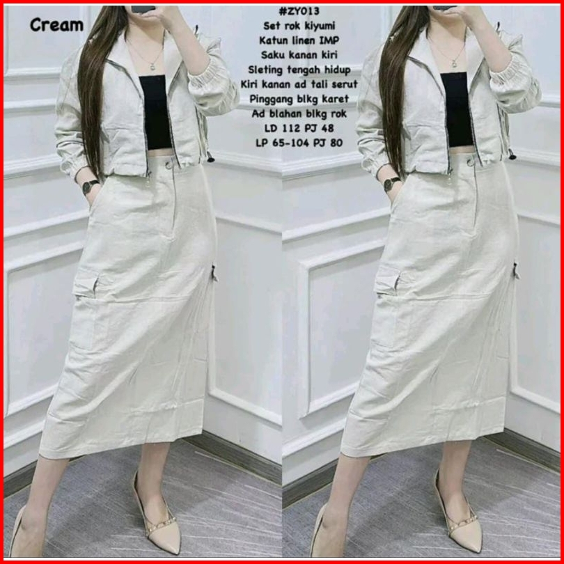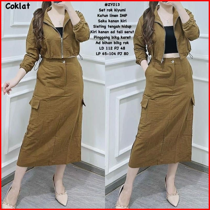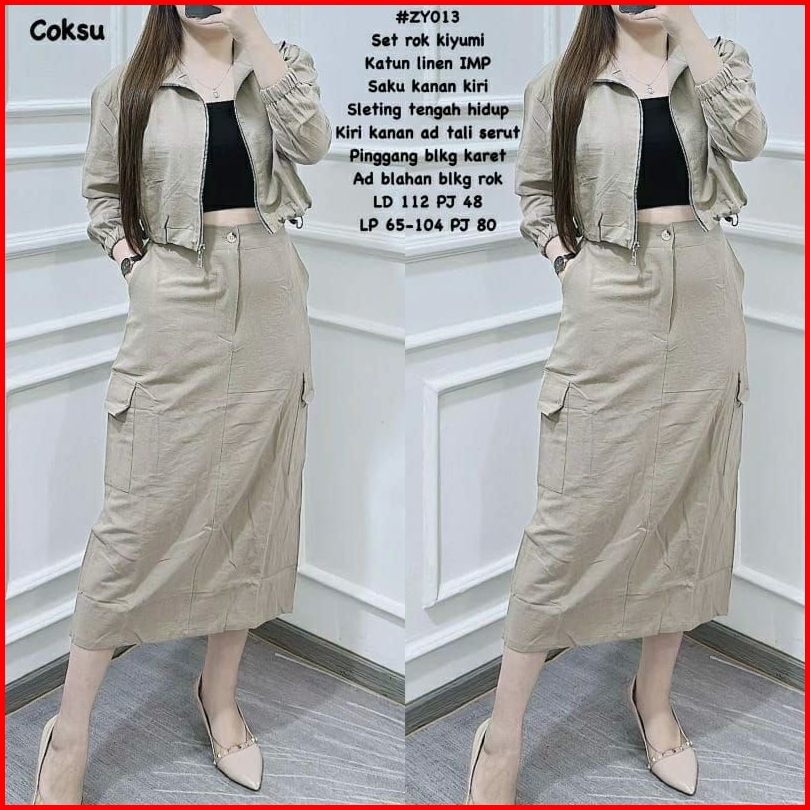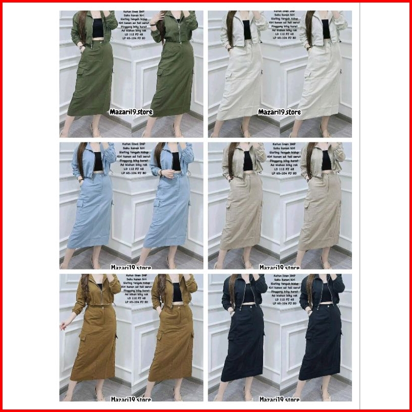 Stelan Set Rok Kargo Katun Linen Kekinian