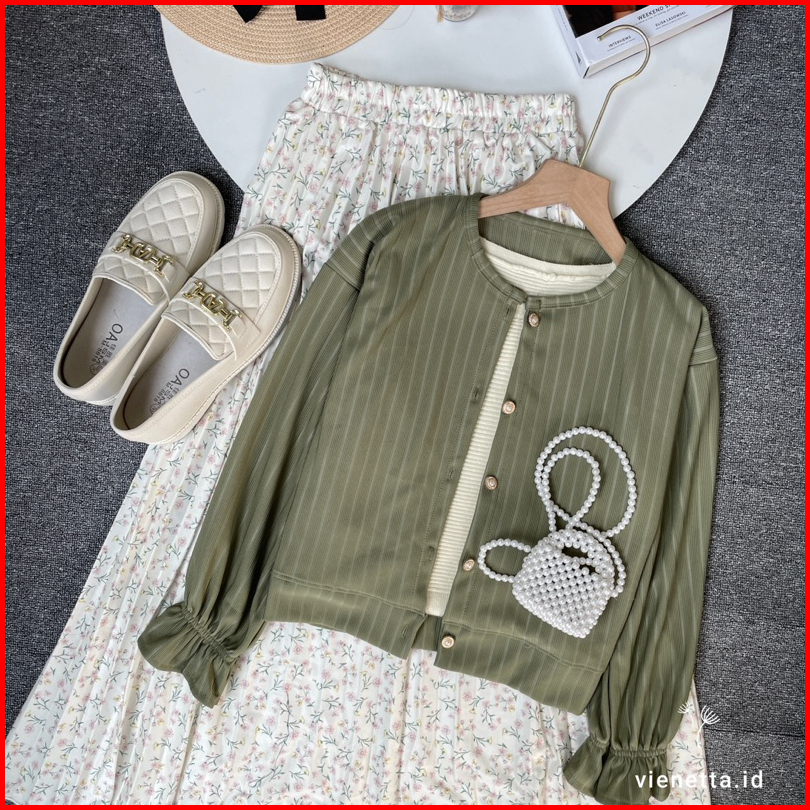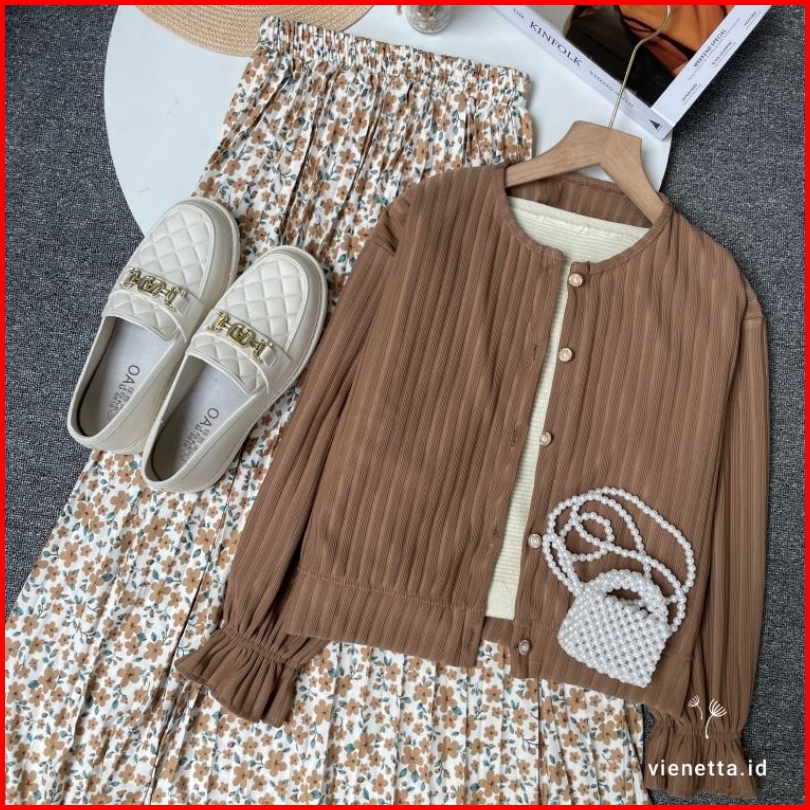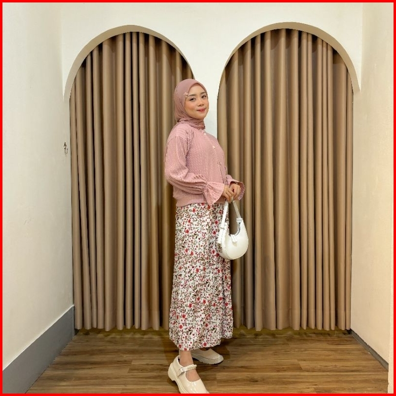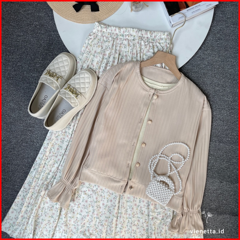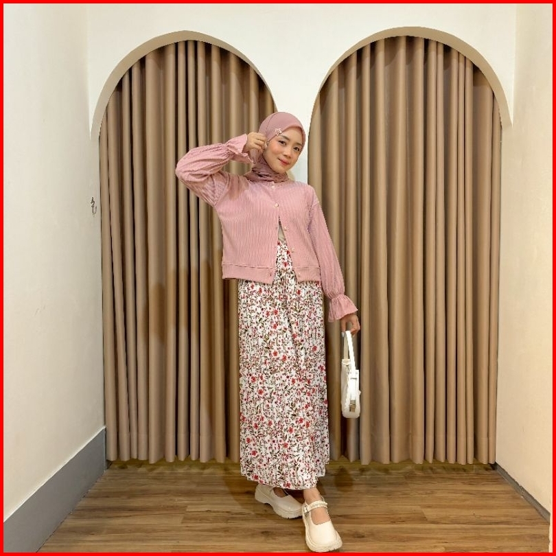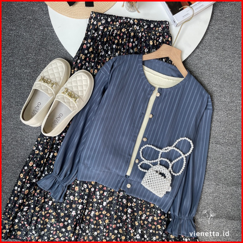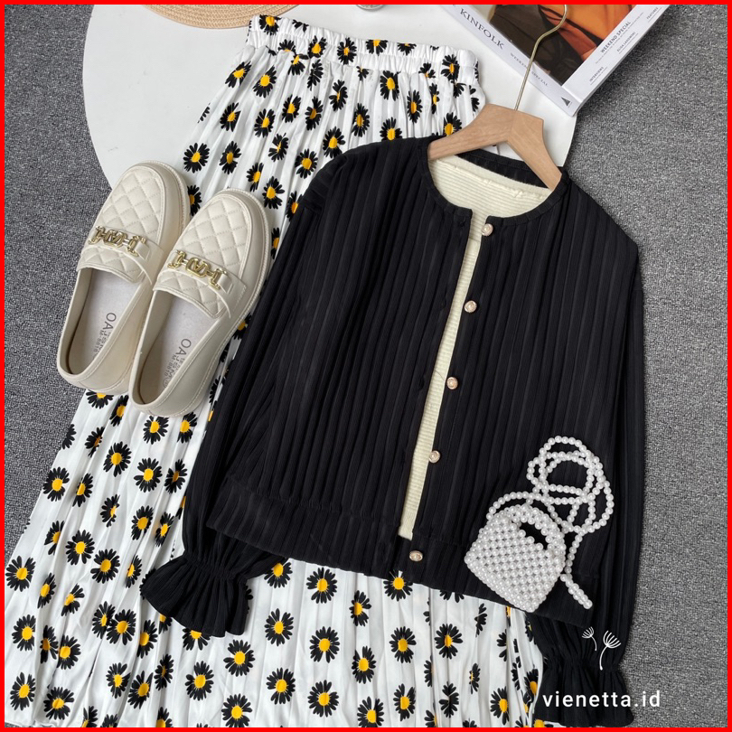 Vienetta Id - One Set Setelan Wanita Kekinian Rok Panjang Wanita Korean Style Atasan Knit Cardi Hornet Rok Motif Bunga R