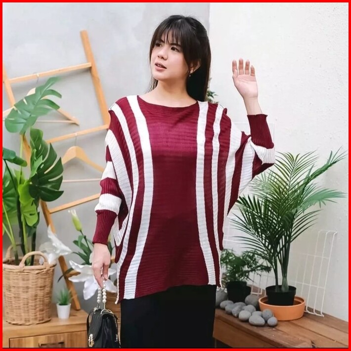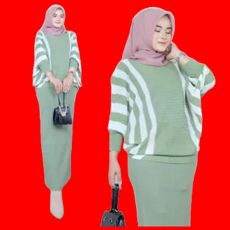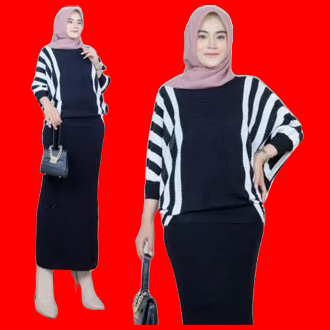 Setelan Rok Rajut Premium One Set Jumbo Pakaian Setelan Wanita Tangan Panjang Motif Garis Terlaris
