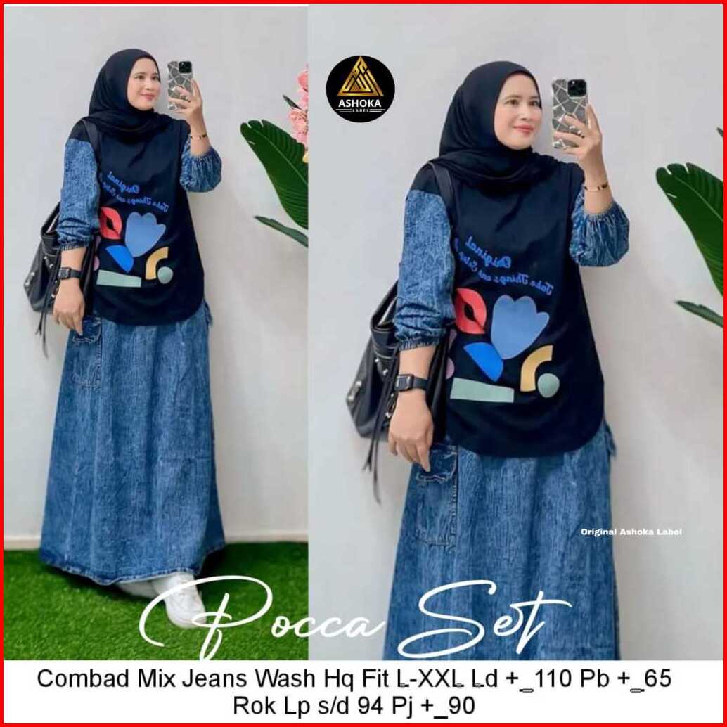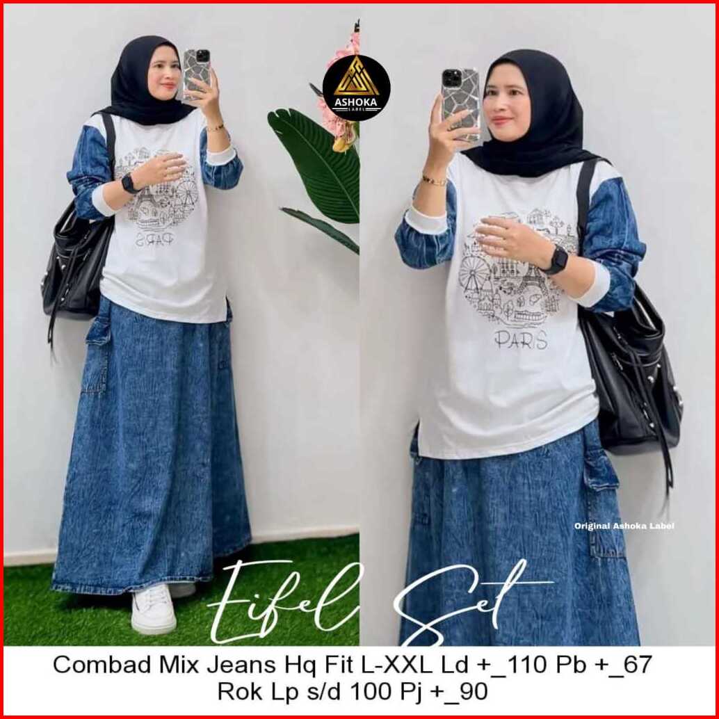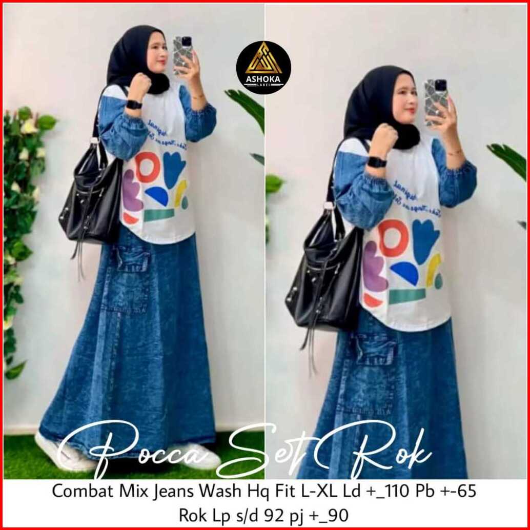 Pocca Eifel Set Rok Terbaru Best Seller Setelan Atasan Kaos Mix Rok Jeans