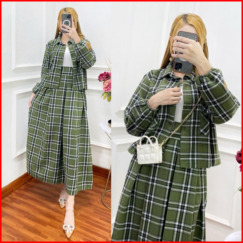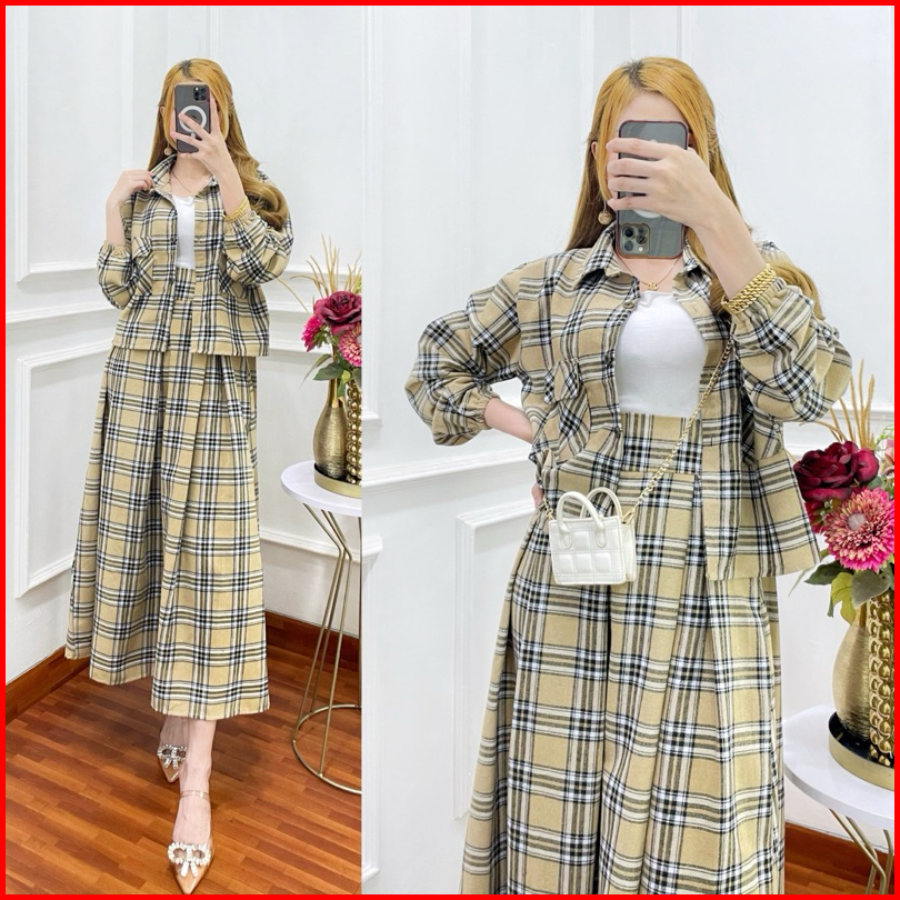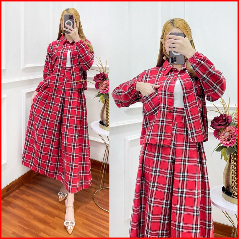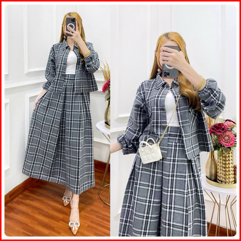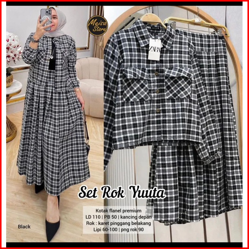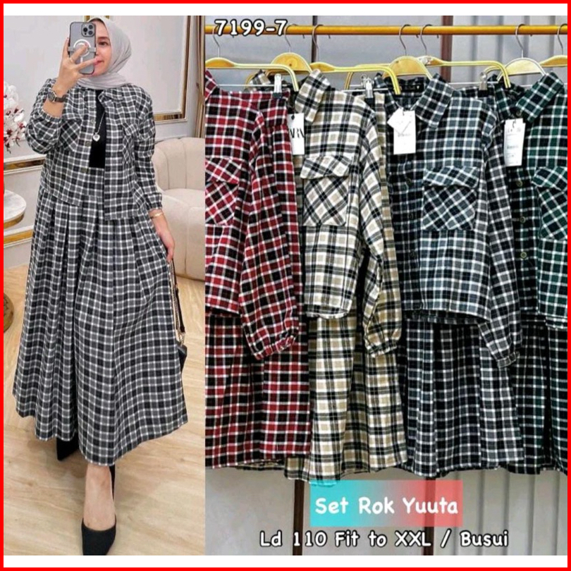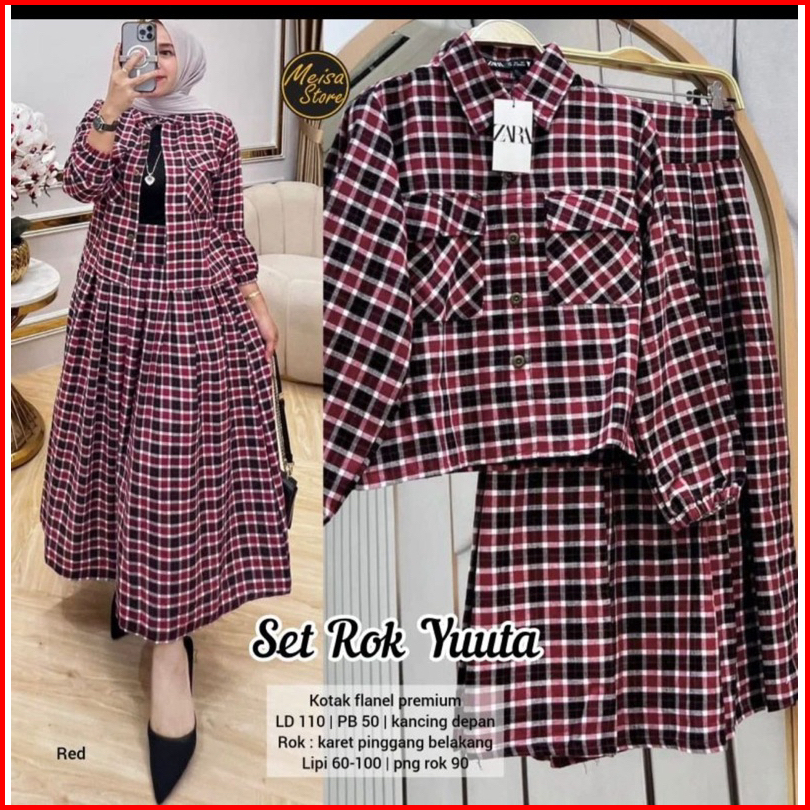 Setelan Rok Yuta Flanel Baju Atasan Wanita Kekinian
