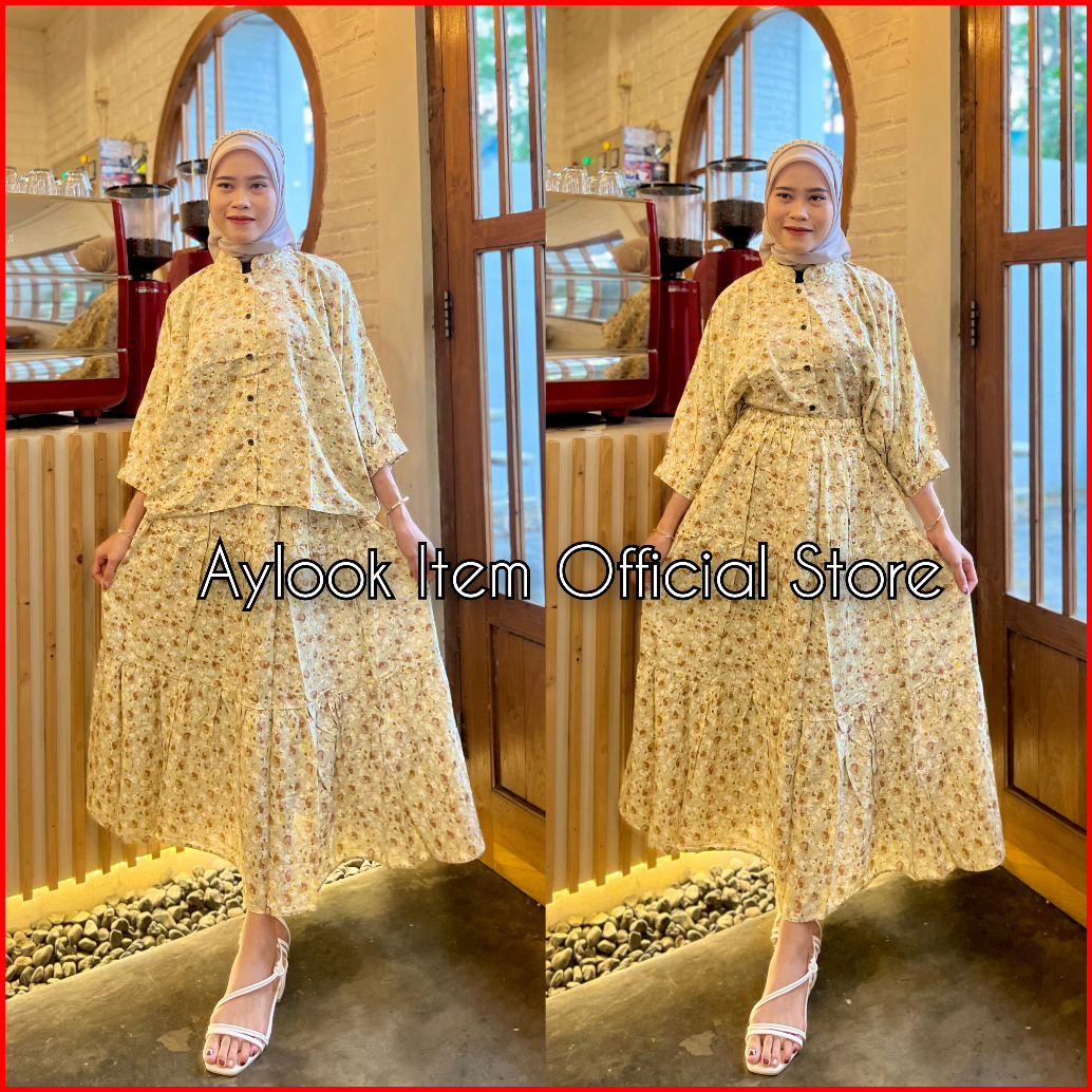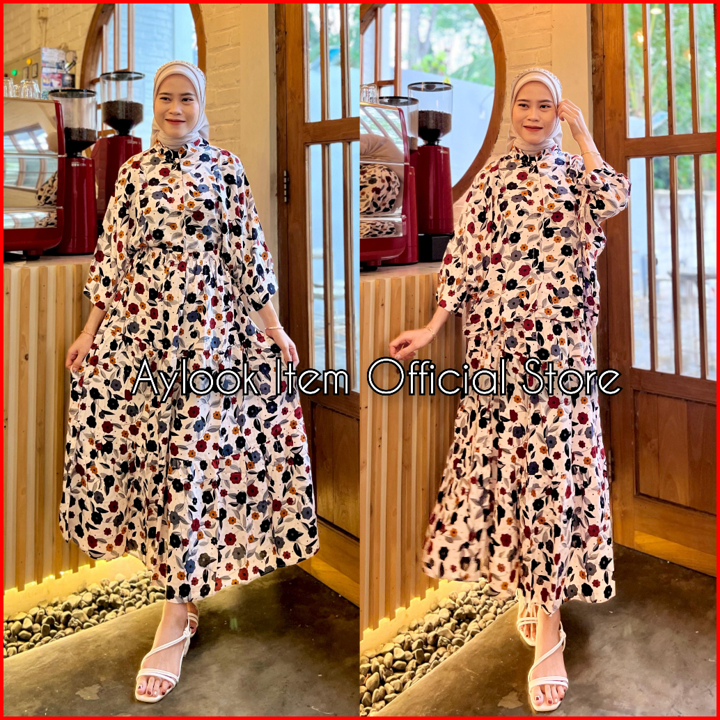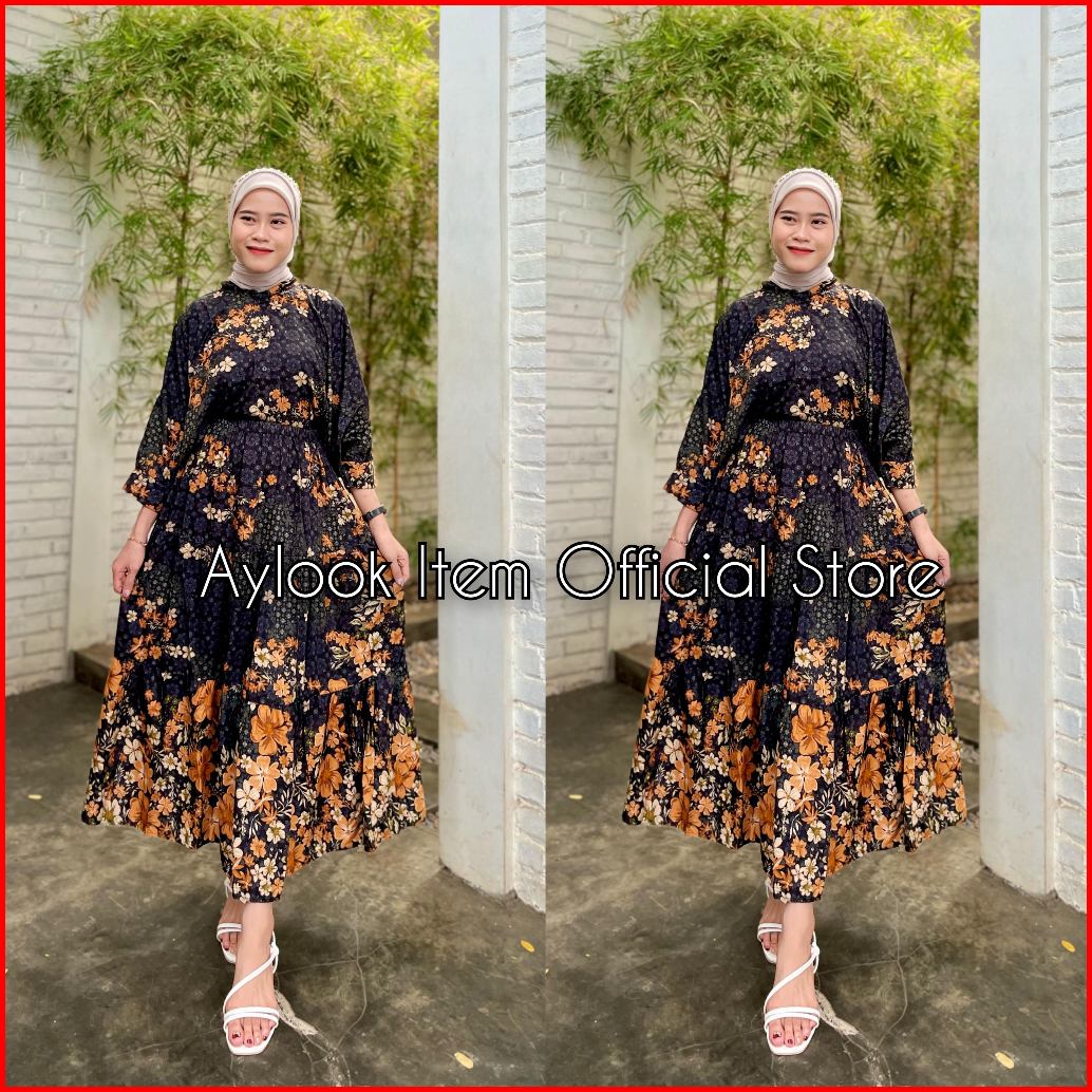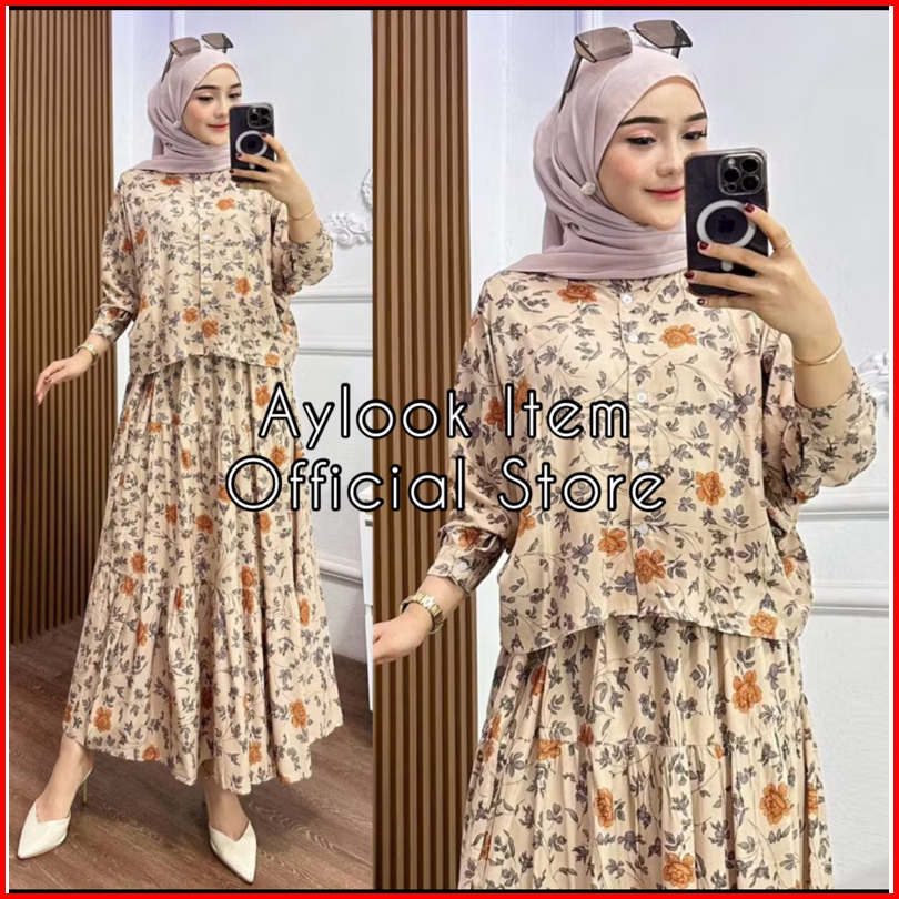 Ghina Set Rok Rayon Premium Motif Lengan Batwing Jumbo Setelan Rok Wanita Terbaru