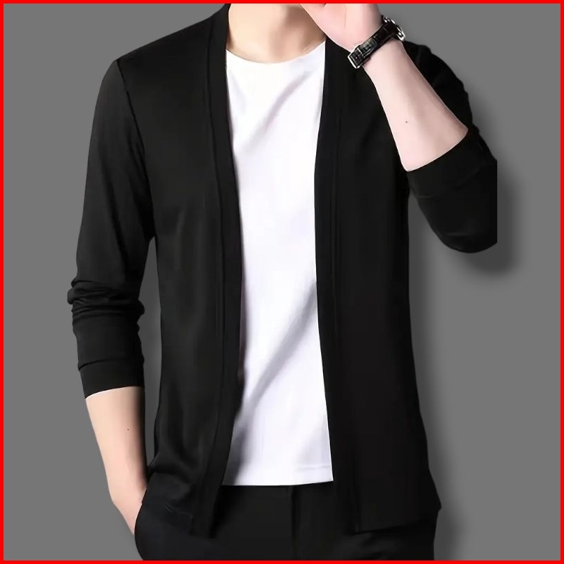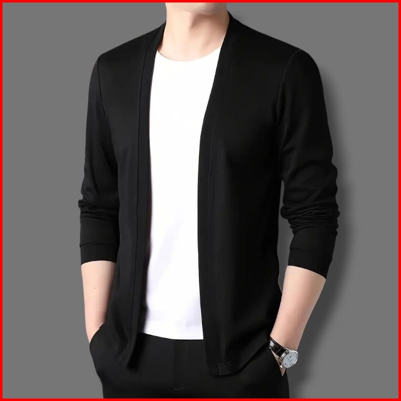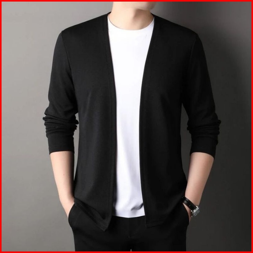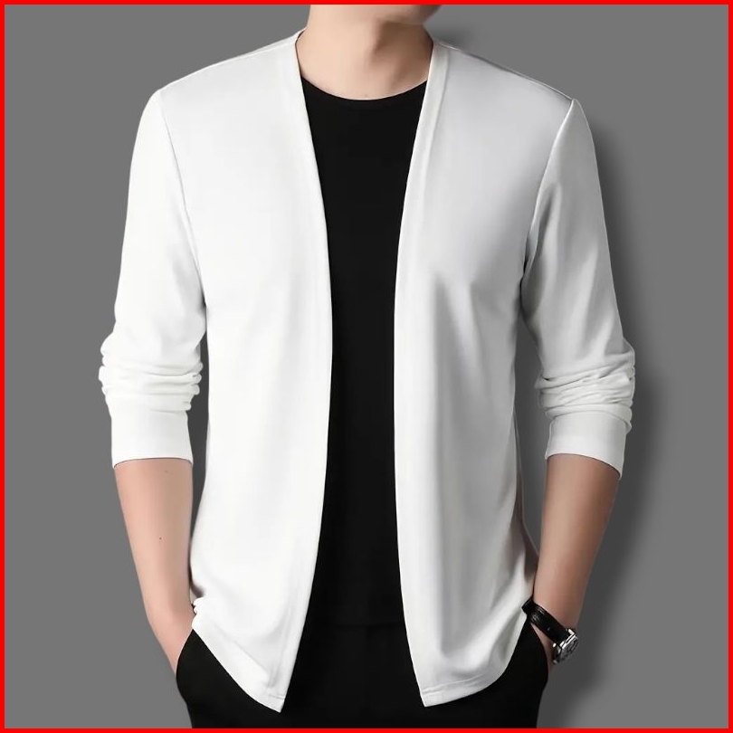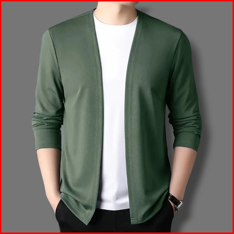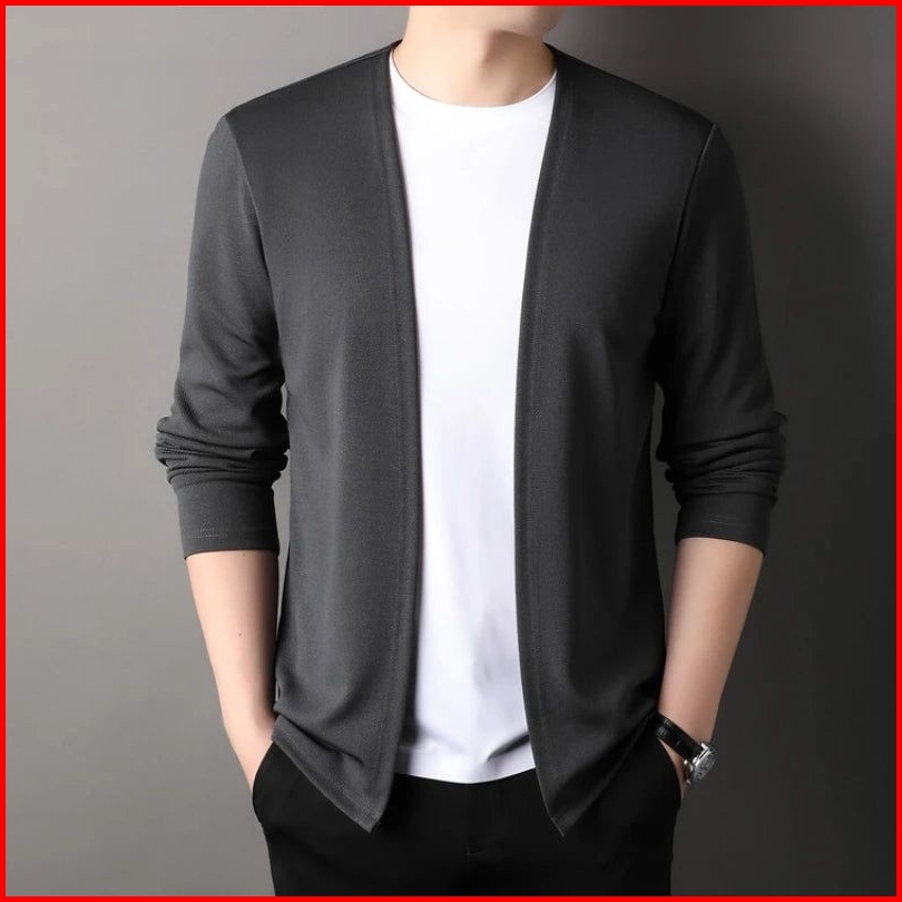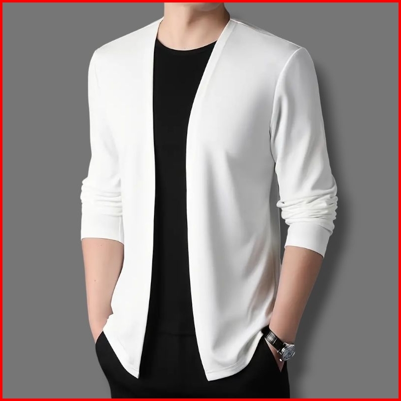 Kaos Lengan Panjang Cardigan V-neck Pakaian Kasual Pria Jahitan Mode Dua Badan Aktif Cowok Pull Over Atasan Kaus Rajutan