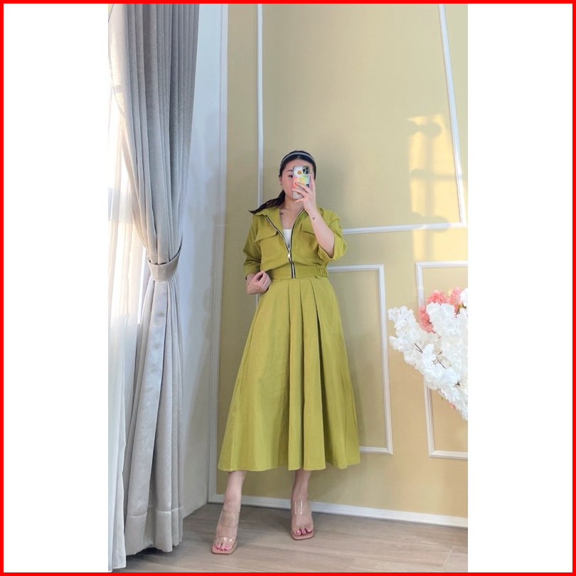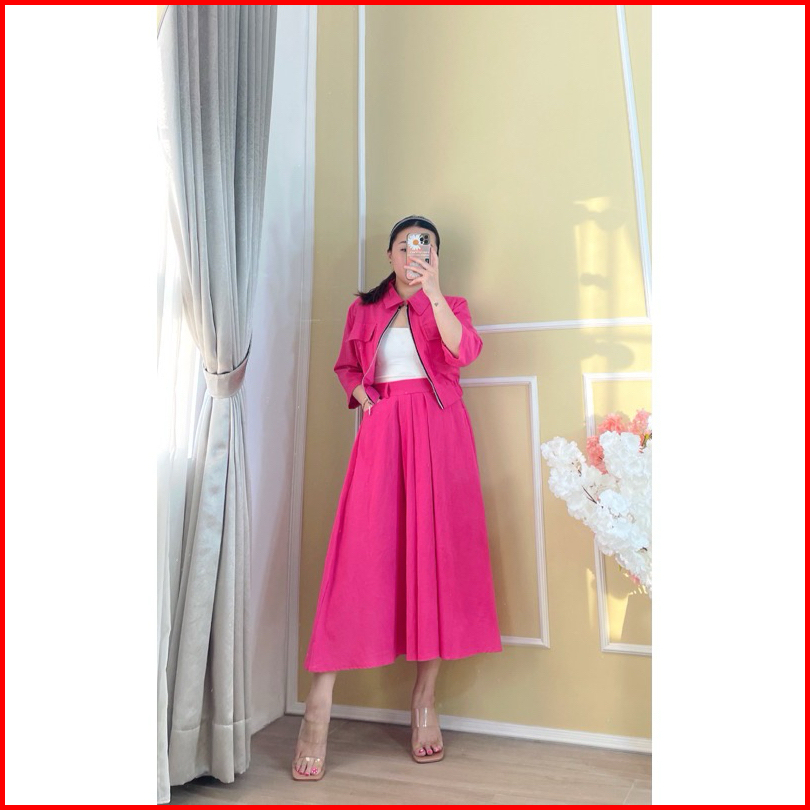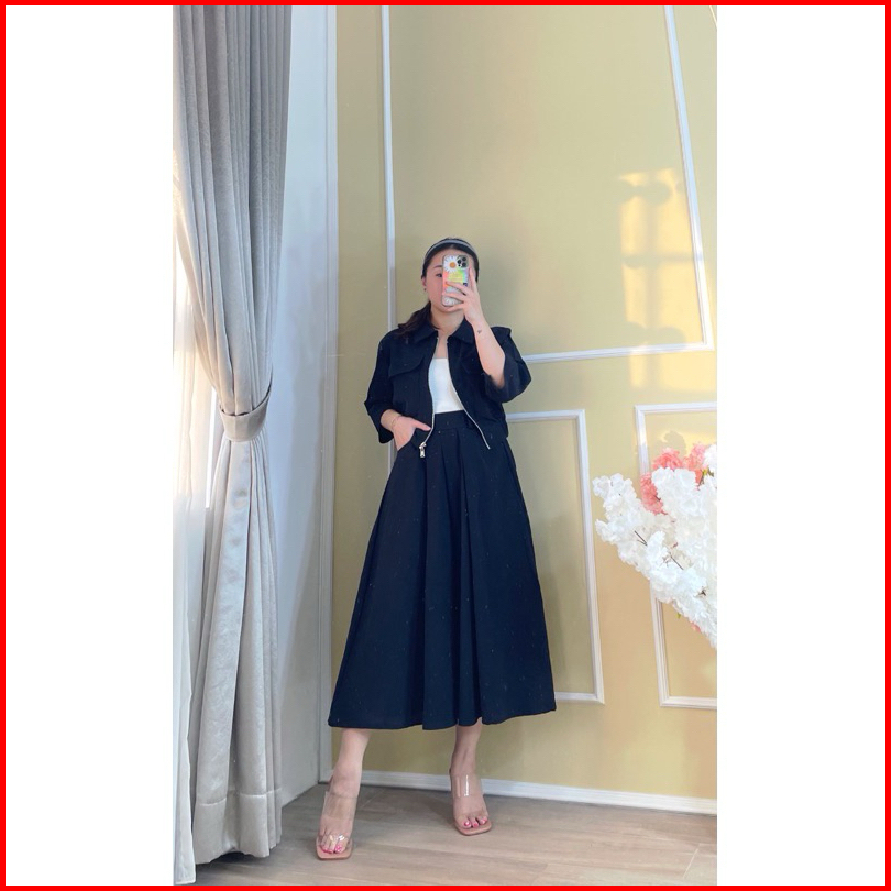 Stelan Rok Ziper One Set Wanita Katun Linen