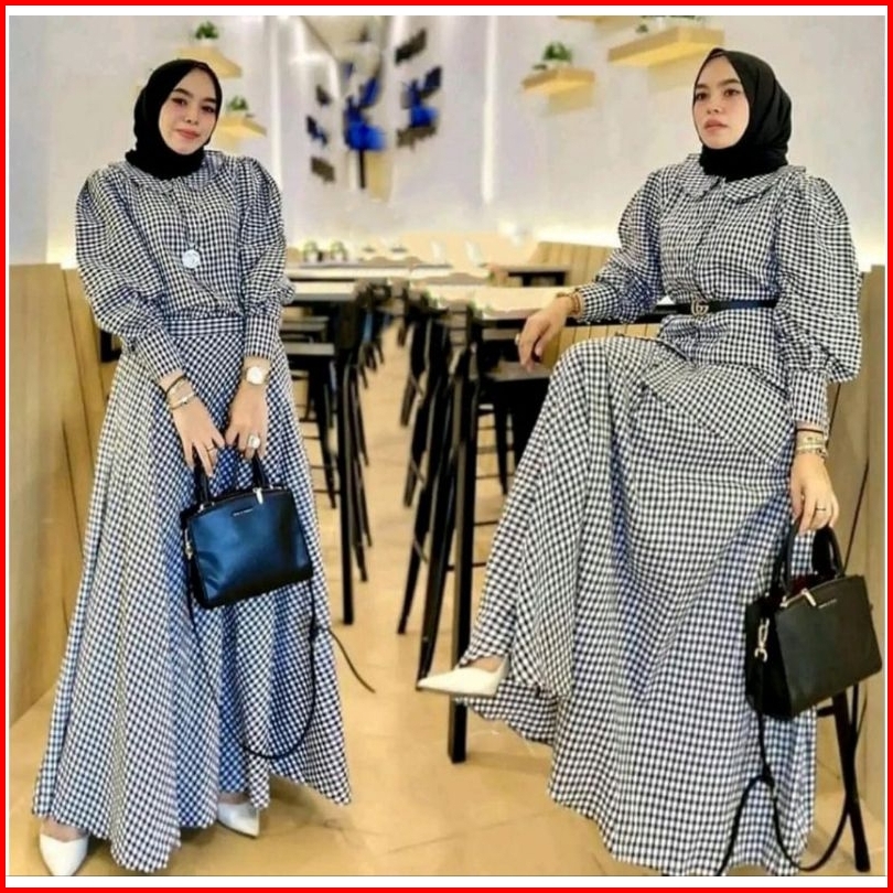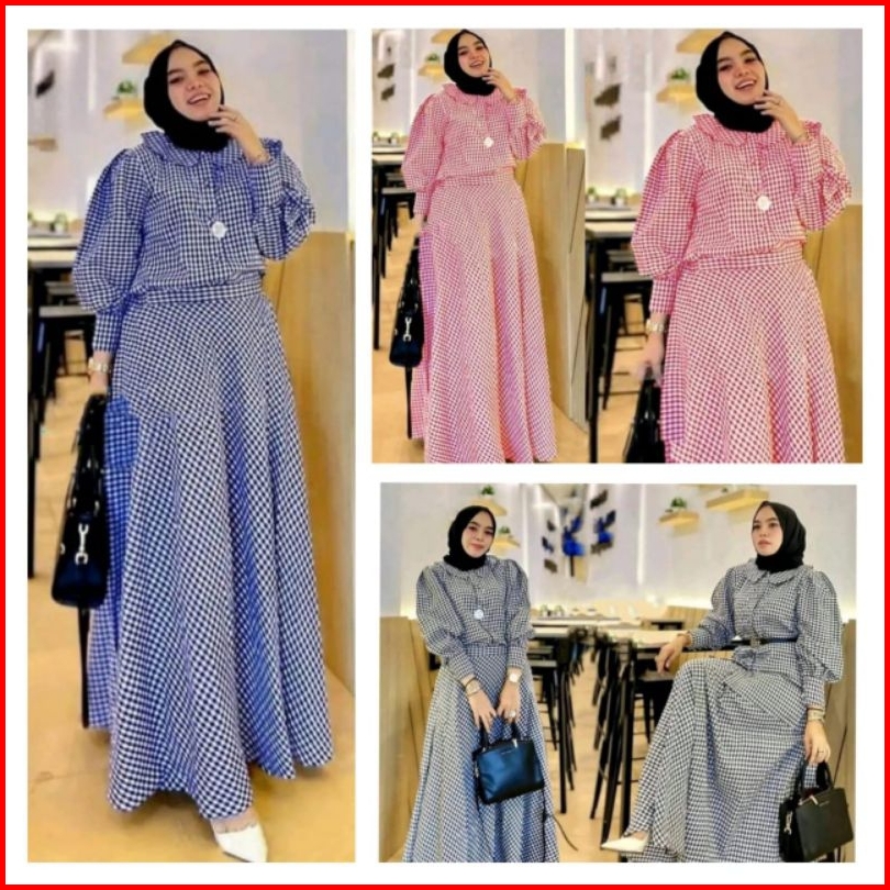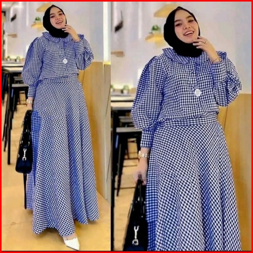 Set Rok Kekinian Cantika Stelan Rok Mayung Kotak-kotak Semi Tunik Busui