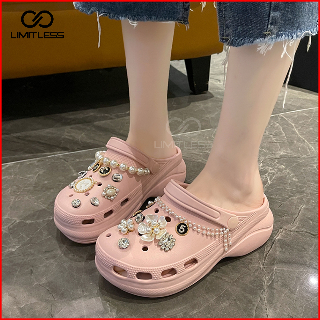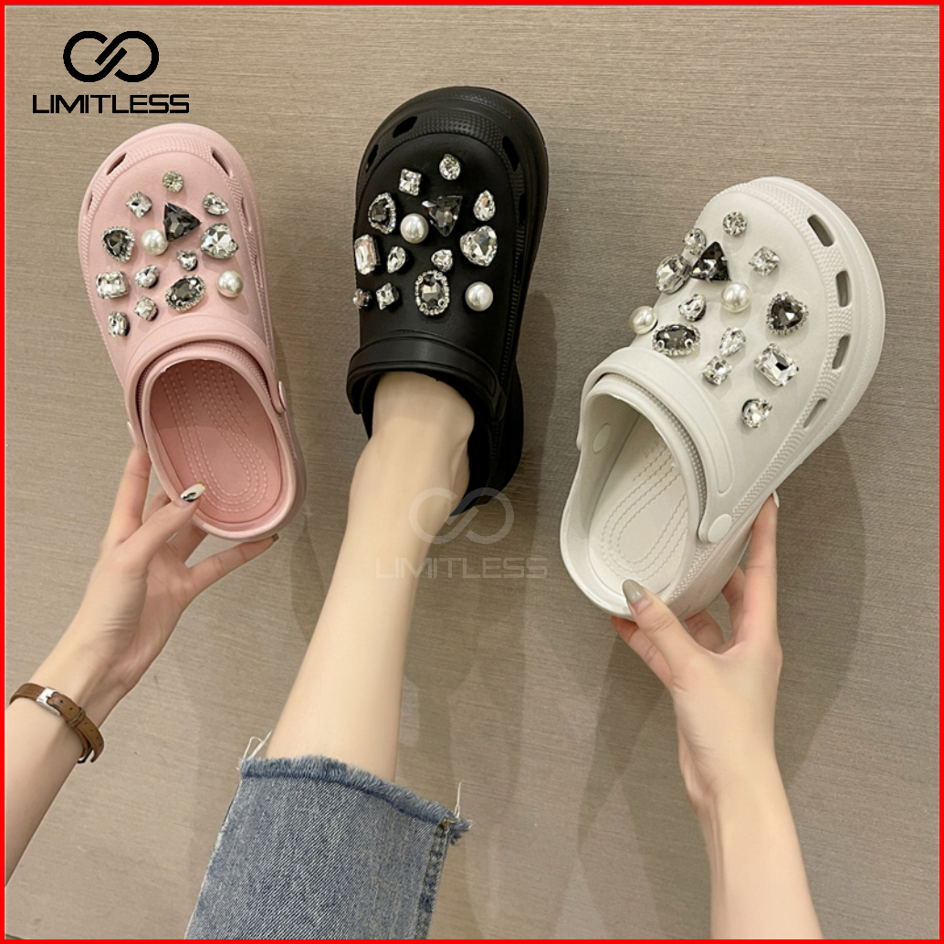 Limitless - Free Permata Sandal Wanita Slop Fuji Permata Jibbitz Stiker Sandal Platform Wanita Terbaru 2025 Kekinian Sen