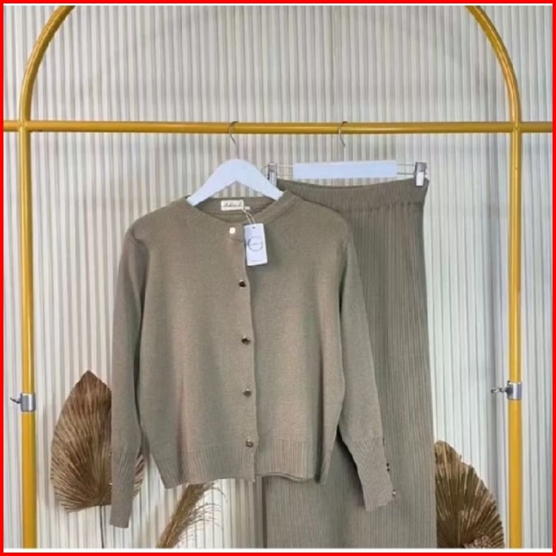Oneset Cardigan Starla Dan Rok Span Rajut Wanita