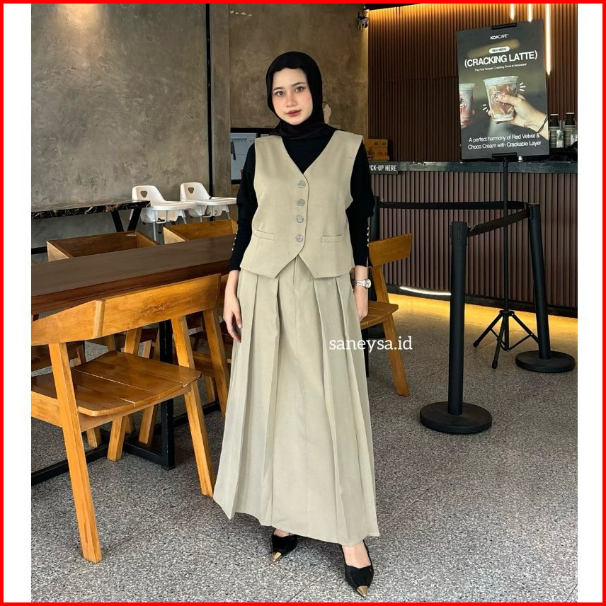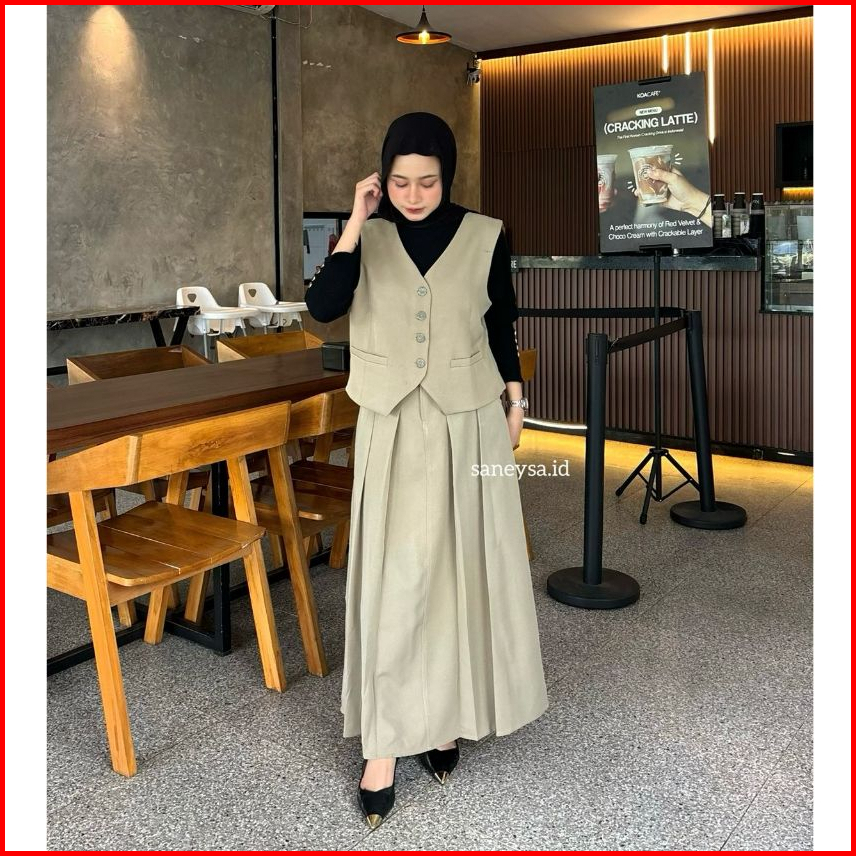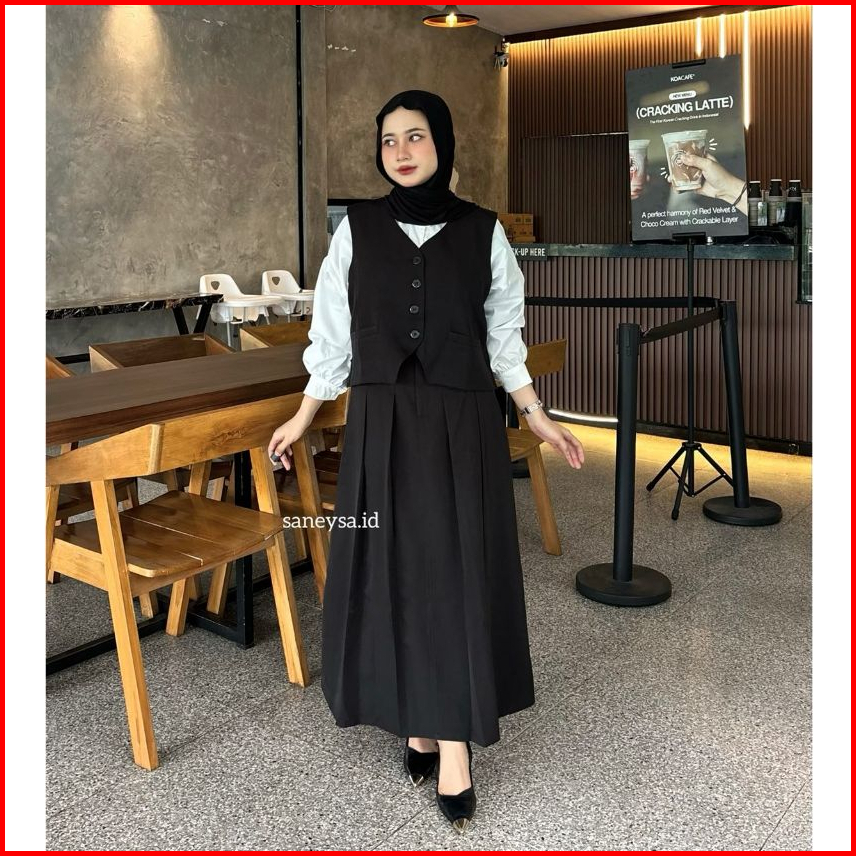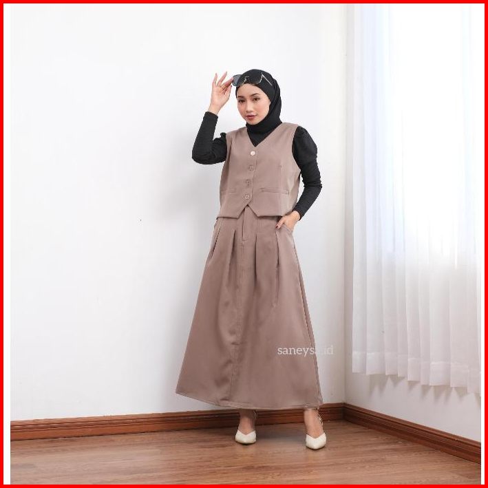 Emma One Set Vintage - Setelan Vest Wanita - Rok Flare Wanita - Rok Panjang Maxi Wanita - Skirt A Line - Rok Panjang Wan