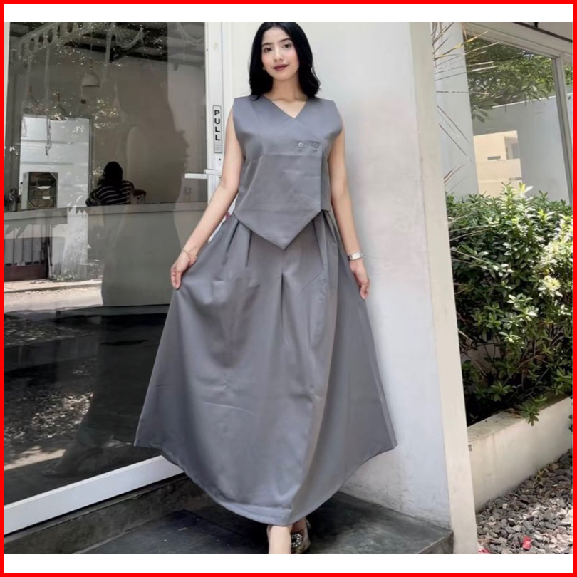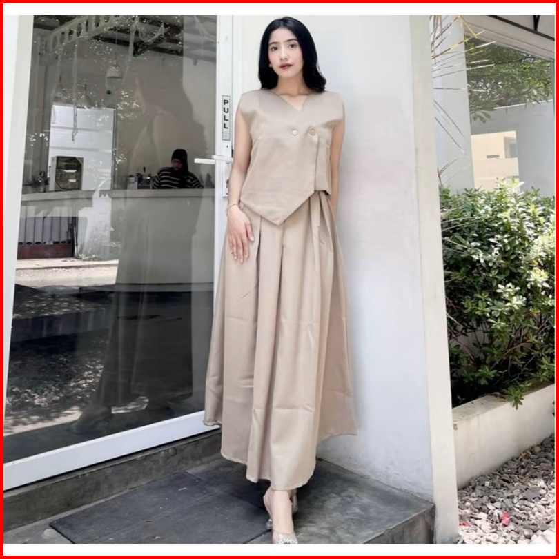 Oneset Vintage Setelan Rok Wanita Kekinian Oneset Rok Dan Vest