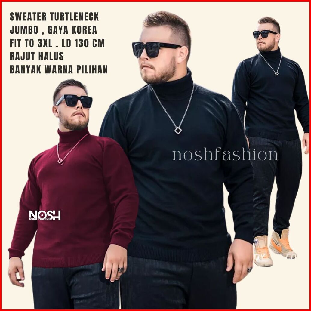 Sweater Rajut Pria Jumbo Terbaru Big Size Outer Rajut Jumbo Size Turtleneck Pria Big Size Korea Style 3xl Vindie - Nosh
