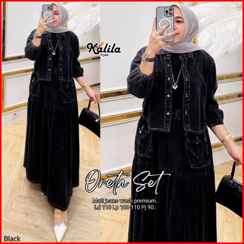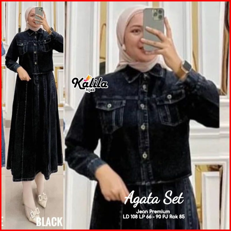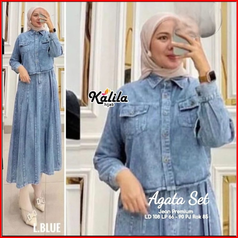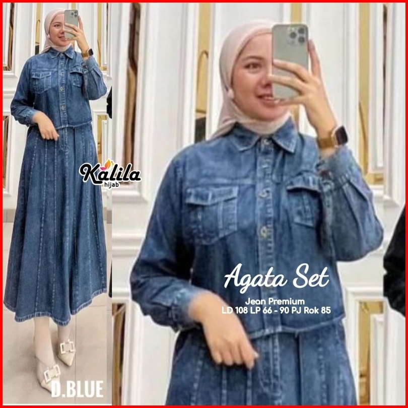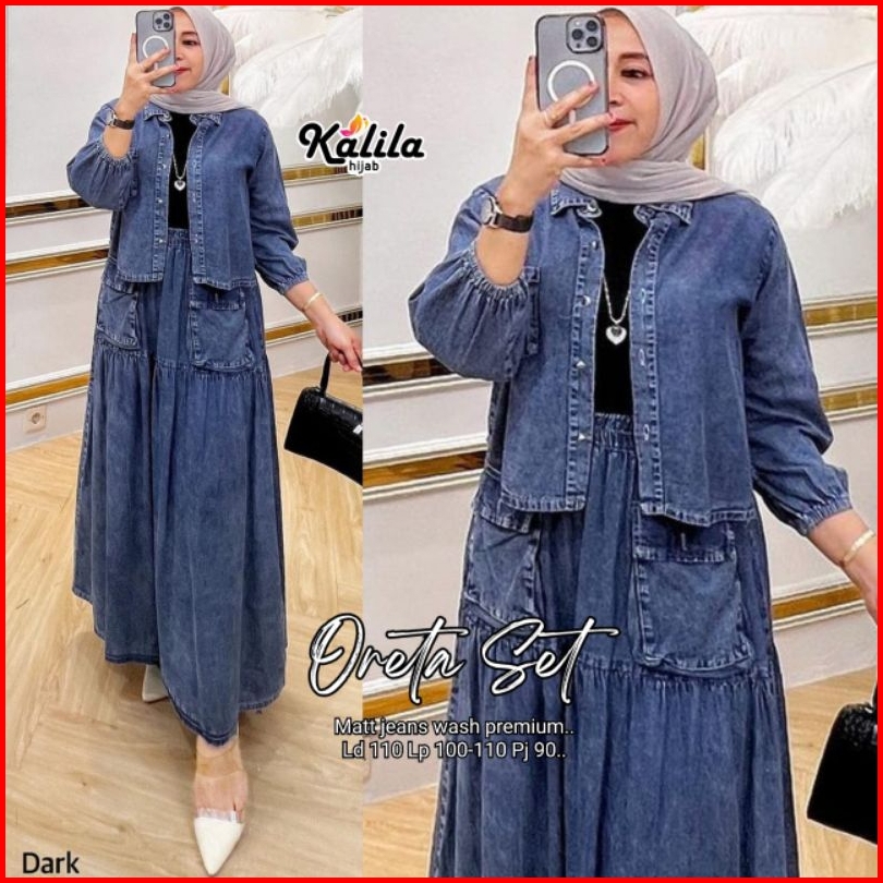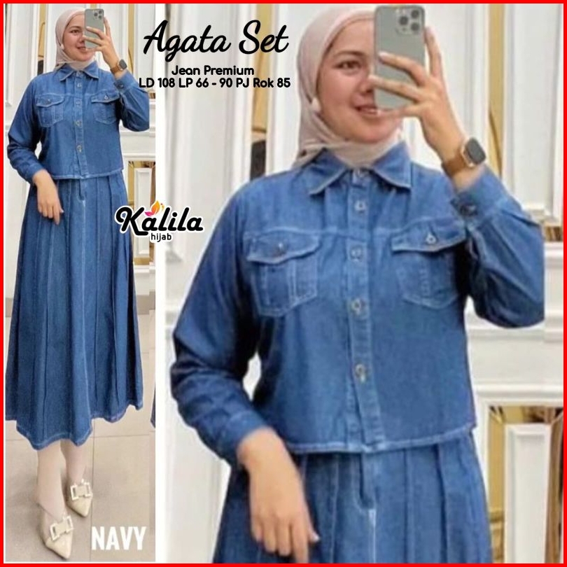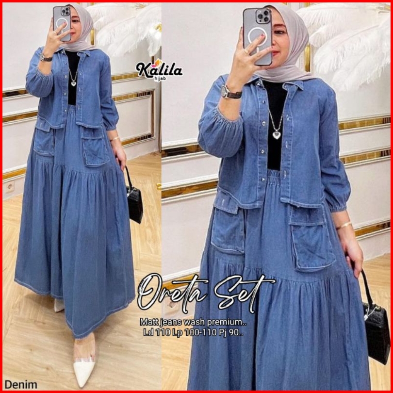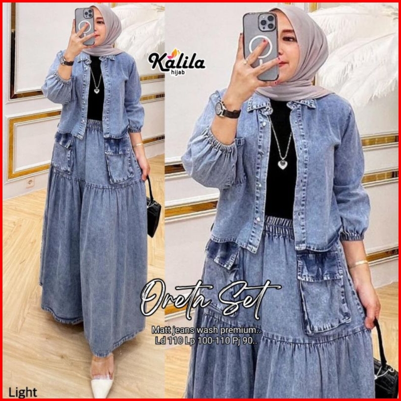 Oreta Agatha Set By Kalila Setelan Wanita One Set Rok Jeans Best Seller