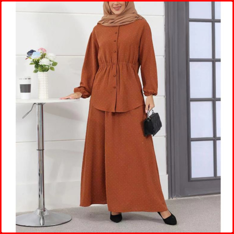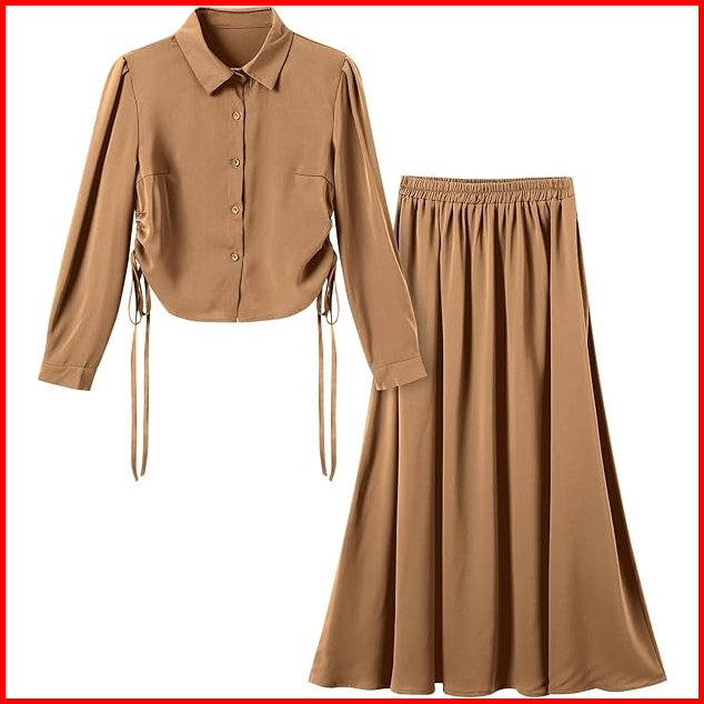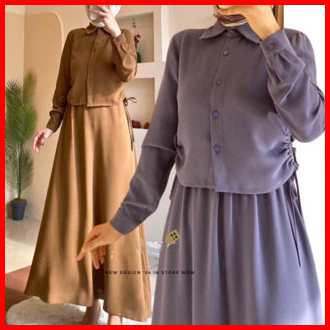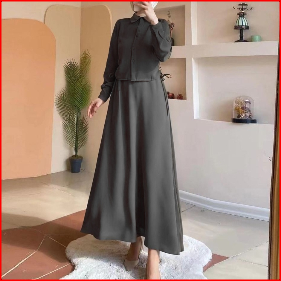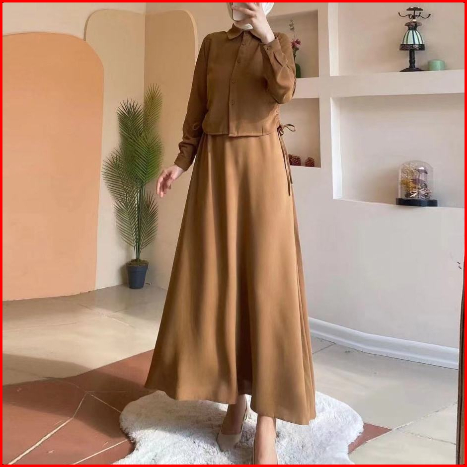 Gdtima One Set Premium Wanita Polo Collar Blouse Rok Elegant Set Rok