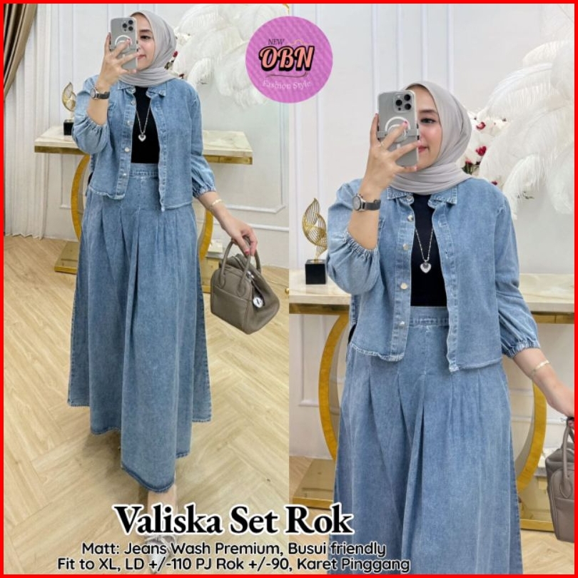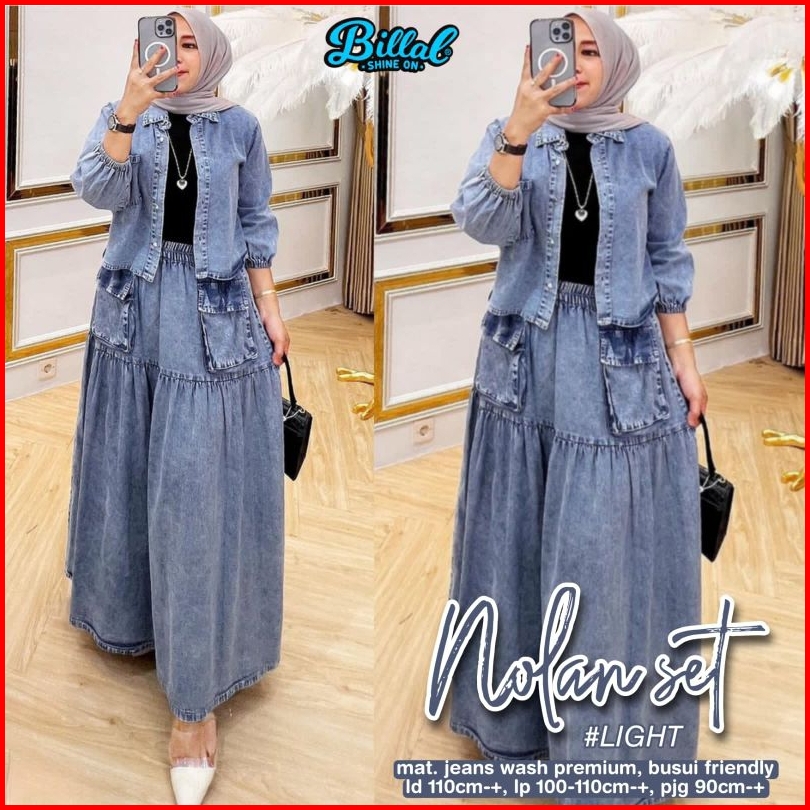 Nolan Set By Bilal Setelan One Set Rok Jeans Dan Atasan
