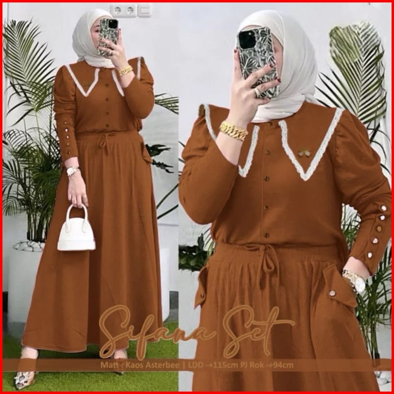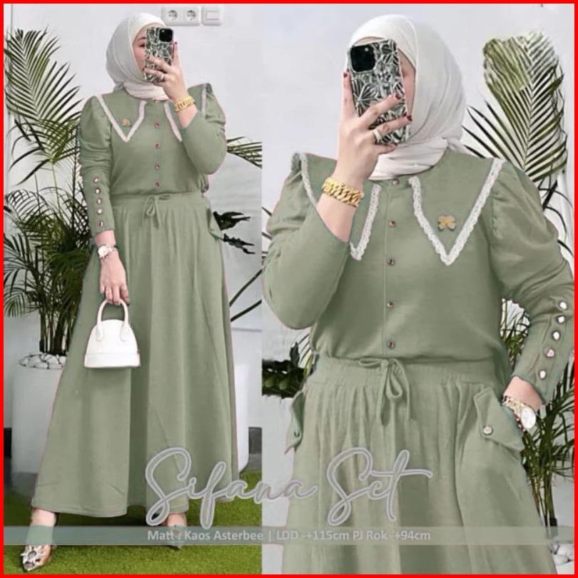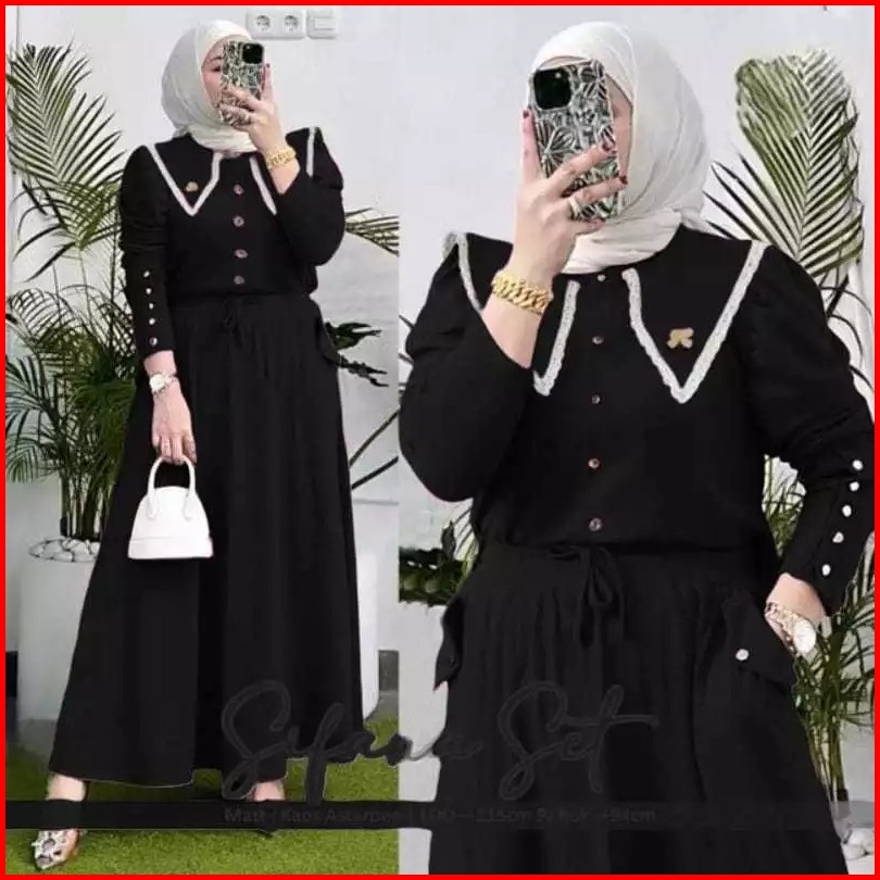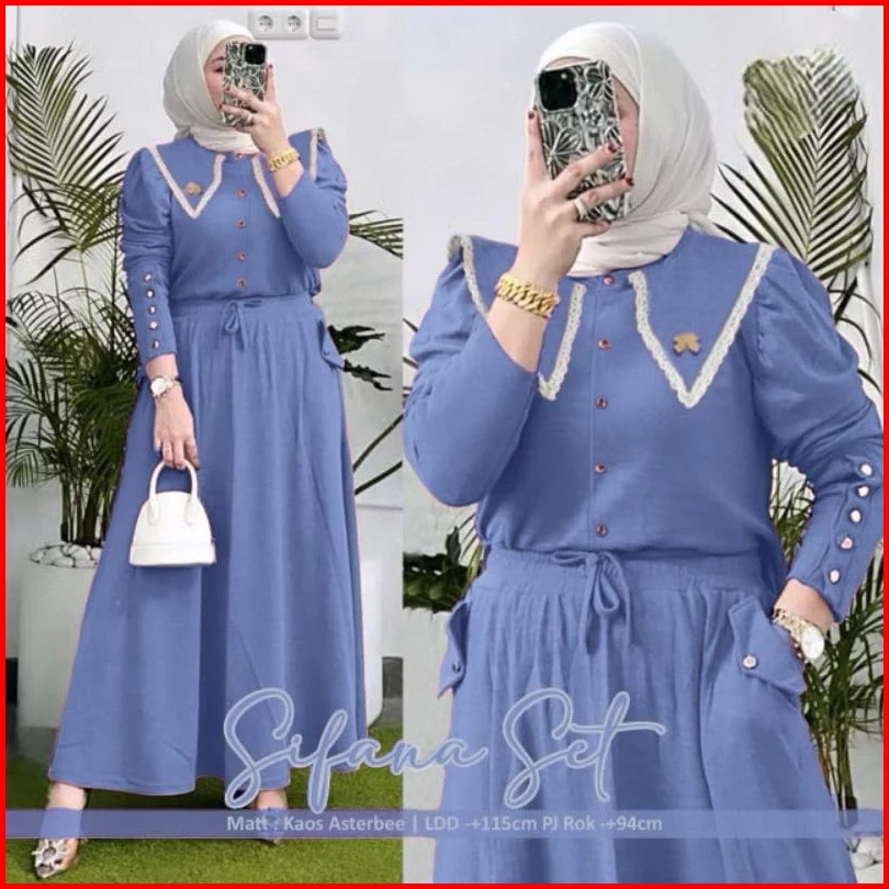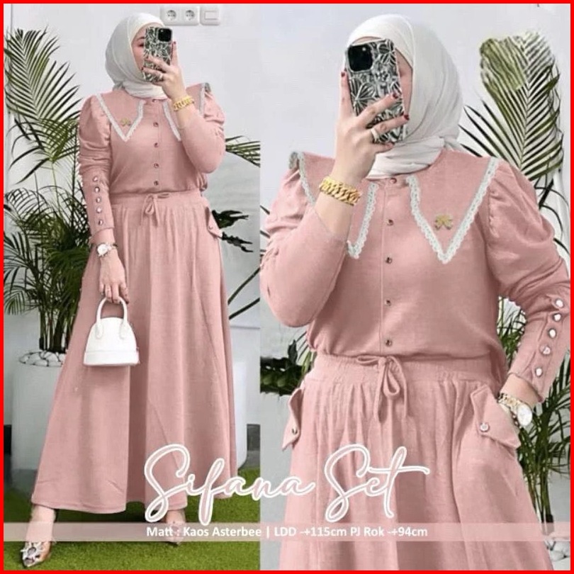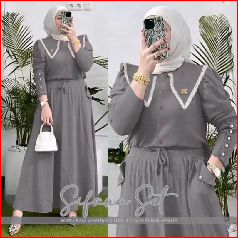 Sifana Setelan Knit Rib Renda Fit To Xl Jumbo Setelan Sifana Setcel Sifana Setelan Kancing One Set Polos Kombinasi Renda