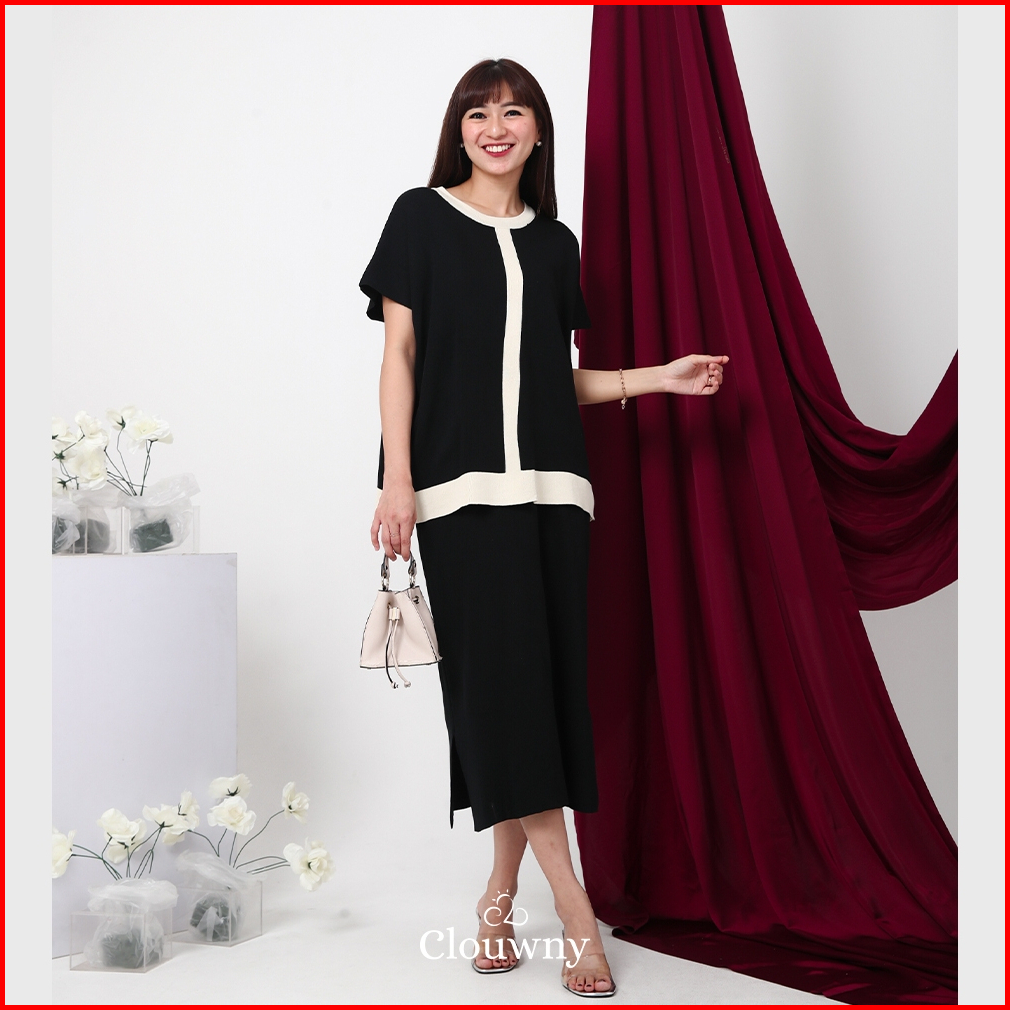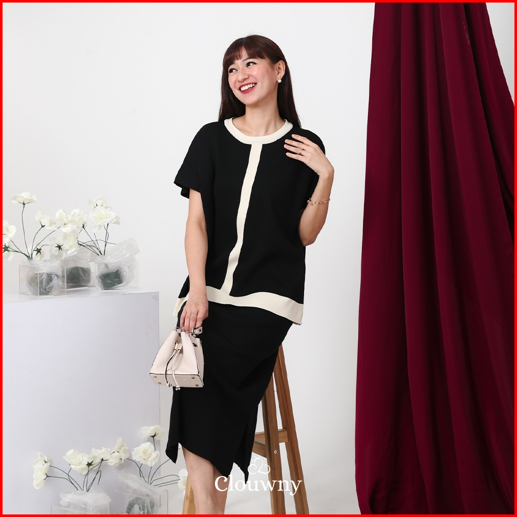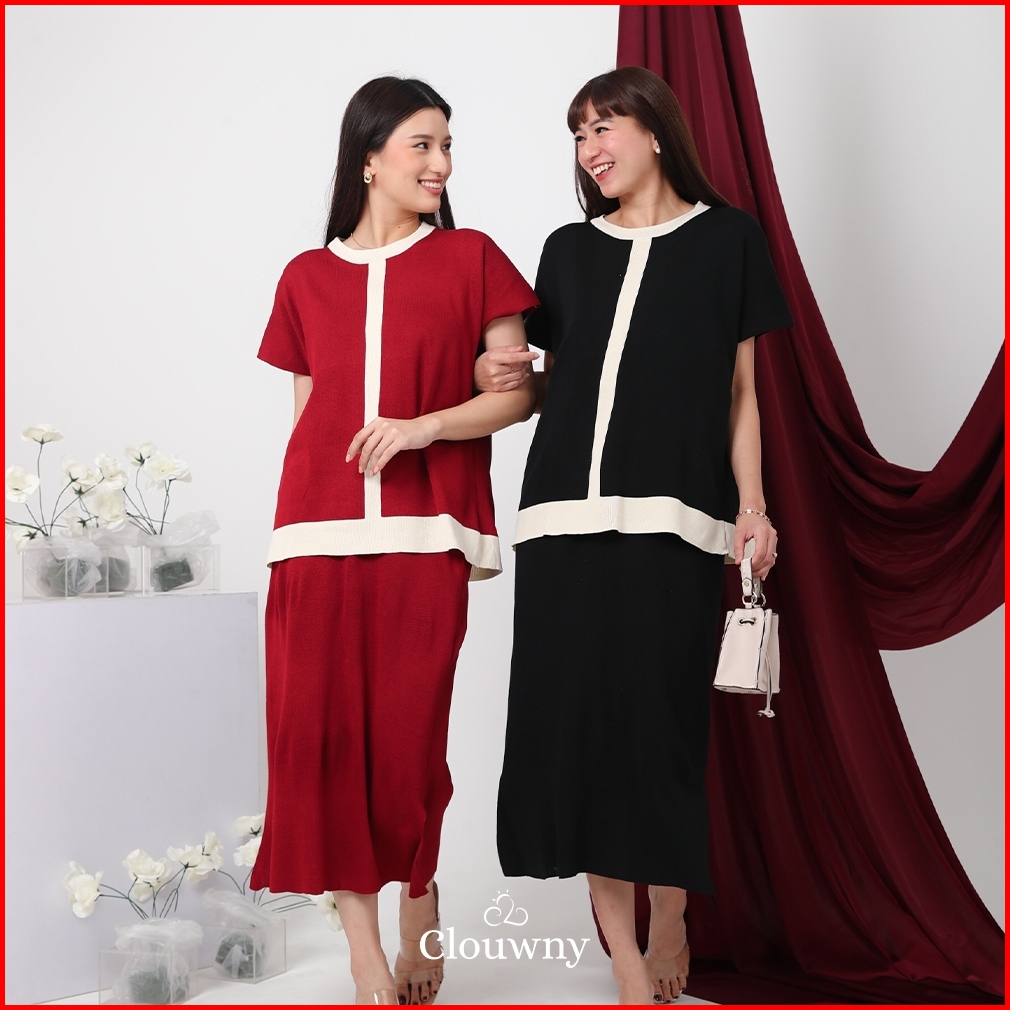 Clouwny Cherish Knit Set Setelan Rok Wanita Premium Knitt Fit To Xxl