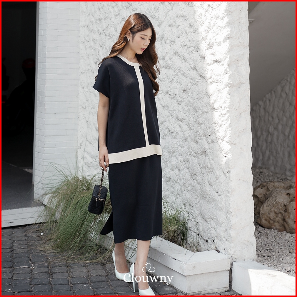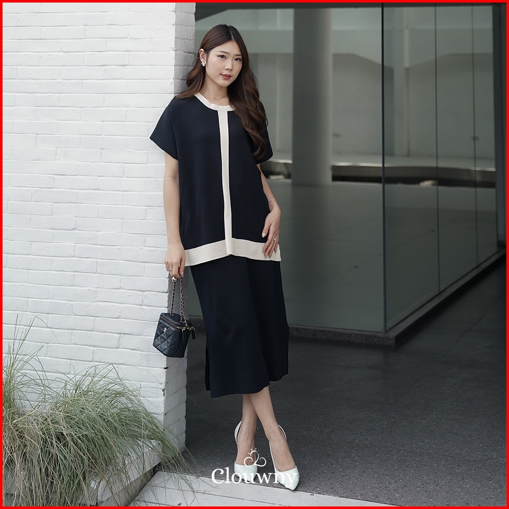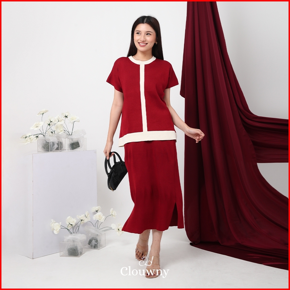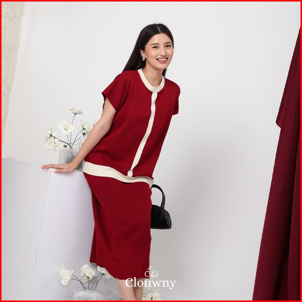 Clouwny Cherish Knit Set Setelan Rok Wanita Premium Knitt Fit To Xxl