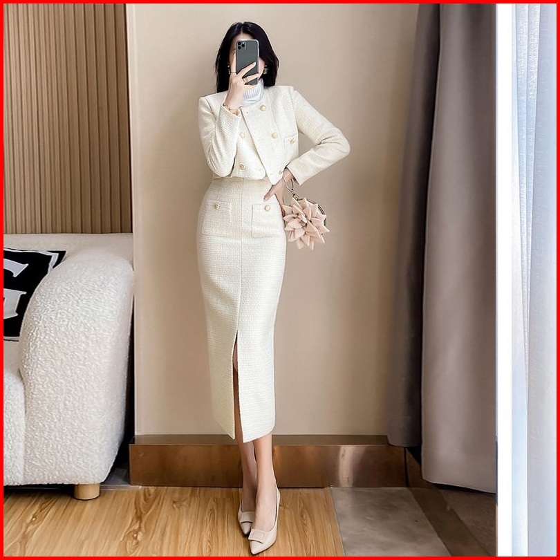 Missmoka Ellora Set Setelan Blazer And Midi Skirt Rok Midi Bodycon Slit