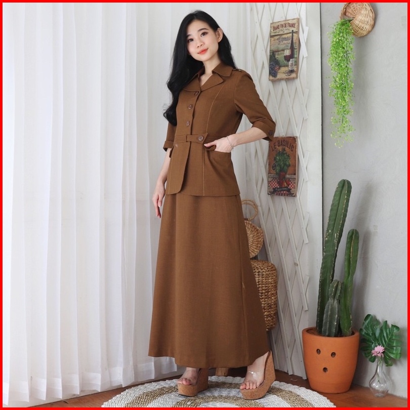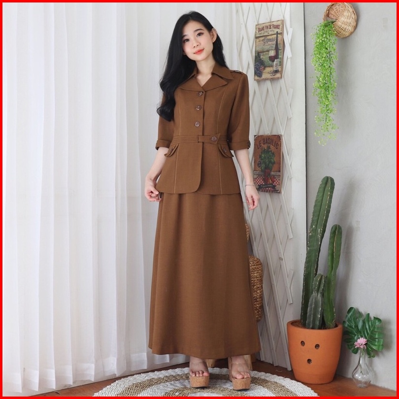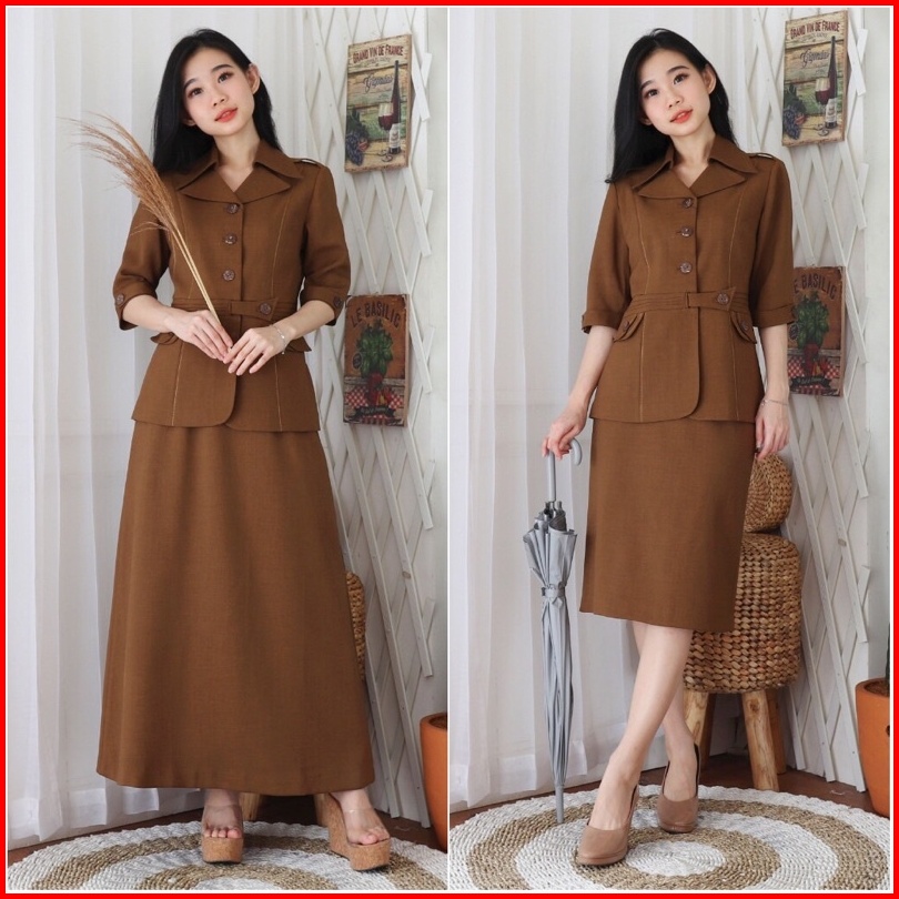 Seragam Pemda Jas Kerah Setelan Rok Pendek Kd 6601 Guru Asn Lengan3 4 Manset Pemda Aceh Khaki Tuax