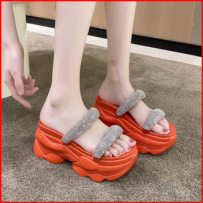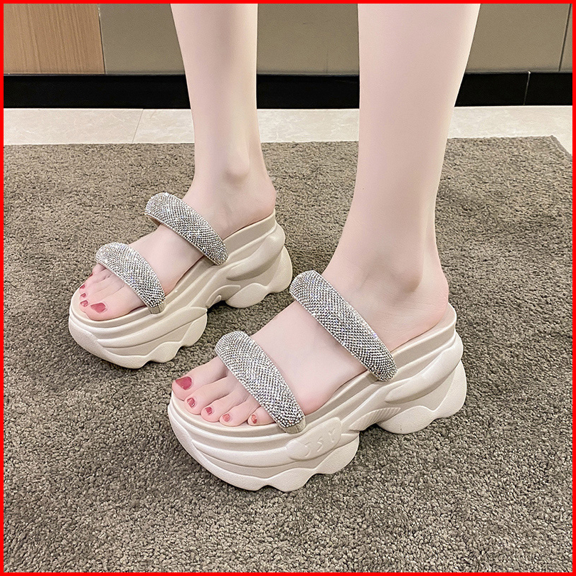 Sn9423 - 8.5cm - Sandal Wedges Kristal Hak Tinggi Fashion Wanita Import