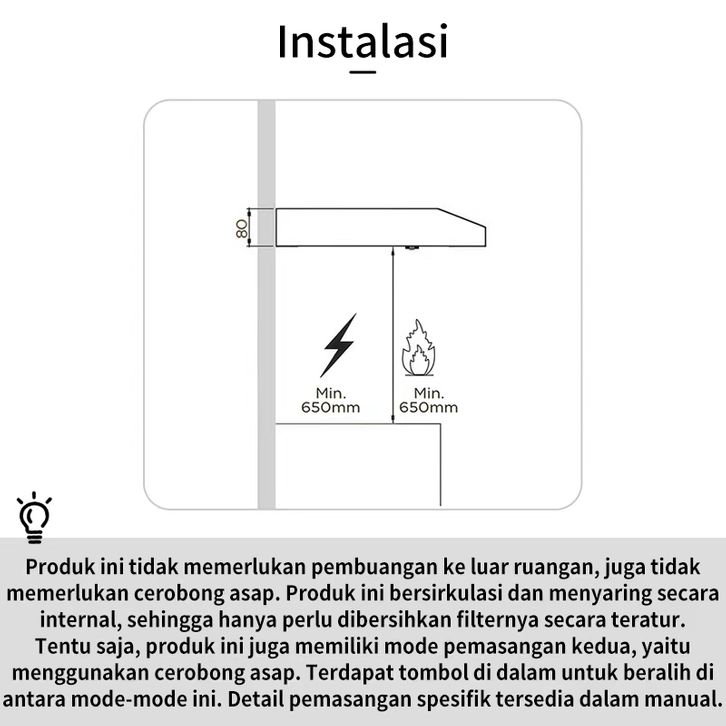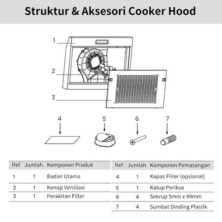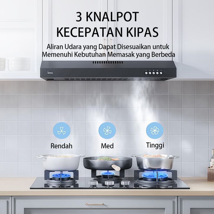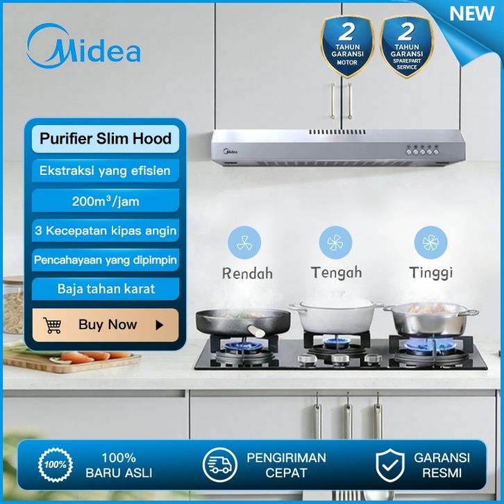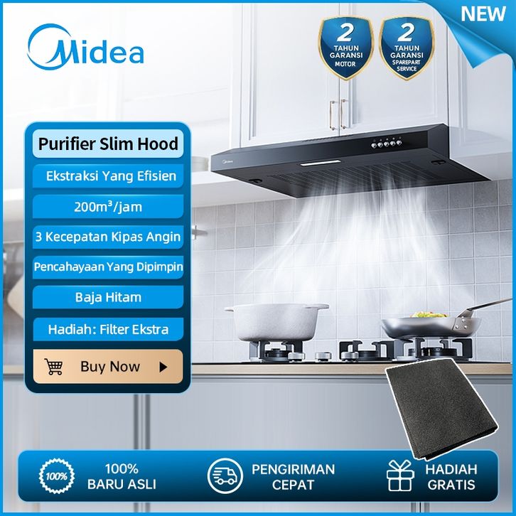 Midea Cooker Hood Slim 60cm 38W MH60F17EM21BB/SB + Gratis Filter Ekstra