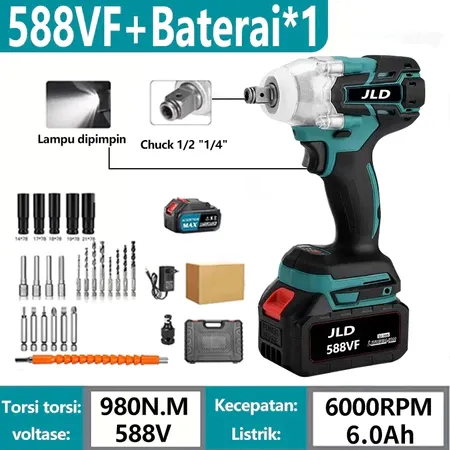 [Star] Impact Wrench Cordless 1090V 1300N.M Brushless - Mesin Impact Buka Baut untuk Mobil & Motor, Torsi Besar & Batera