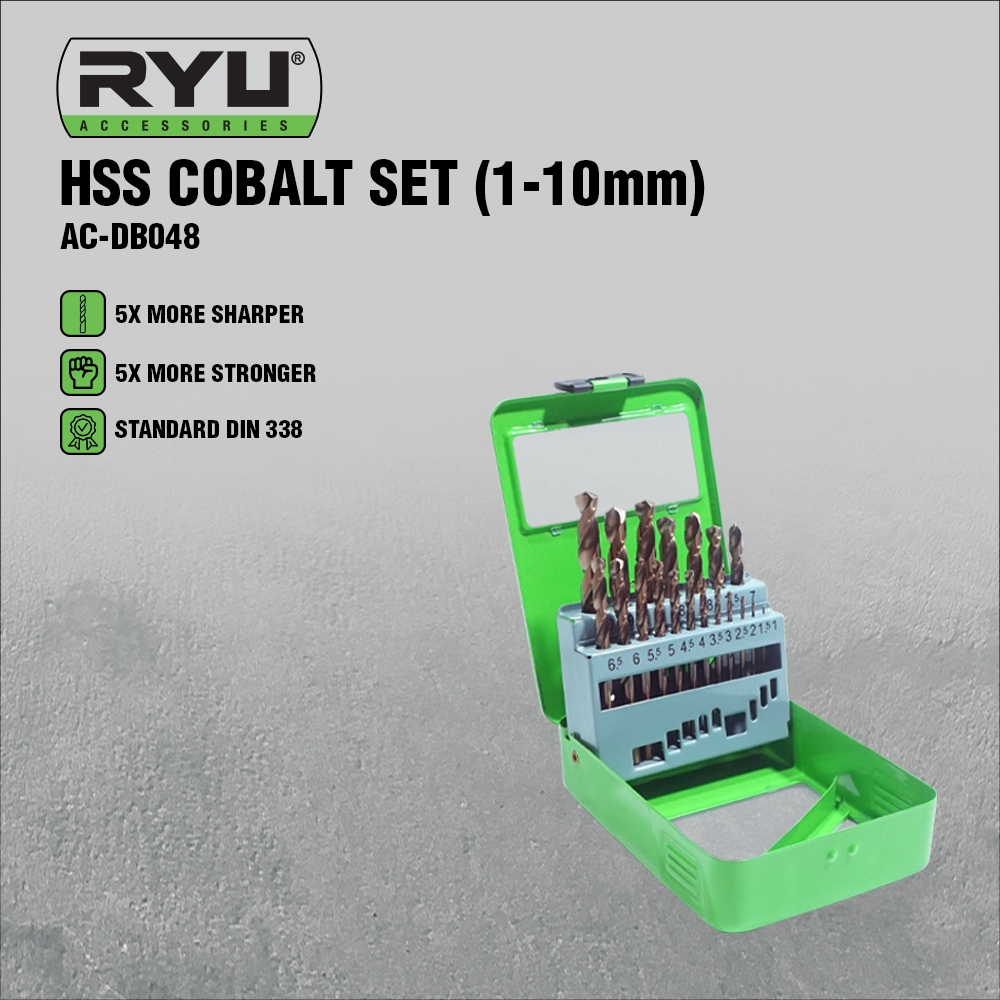 Ryu Hss Cobalt Set (1-10Mm) - Mata Bor Besi/Stainless