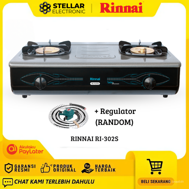 [Star]Kompor Gas Rinnai 2 Tungku RI-522E RI-712T Api Biru Stainless Garansi Resmi - Official Store