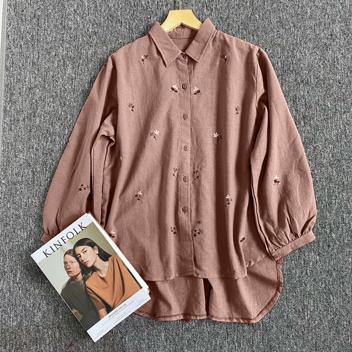 Kemeja Wanita Dewasa Lengan Panjang Oversize Linen Rami Baju Atasan Muslim Ootd Korean Style