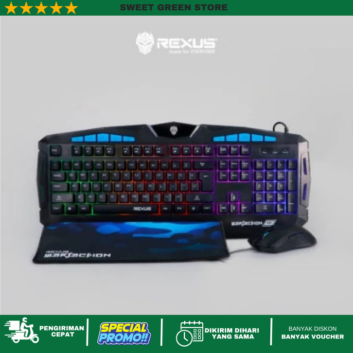 Rexus Warfaction VR1 Keyboard Mouse Gaming Combo - Free Gaming Mousepad